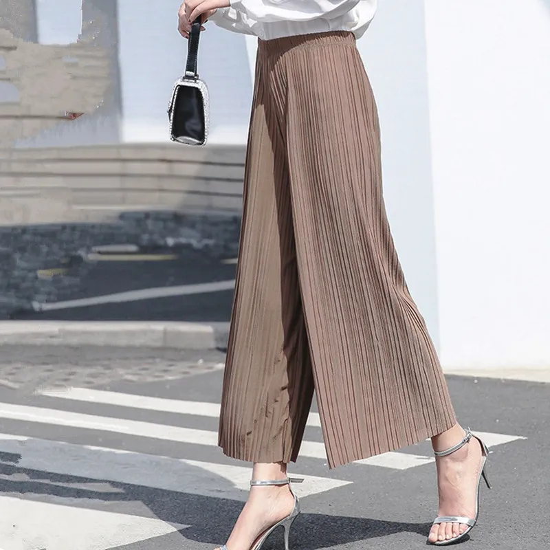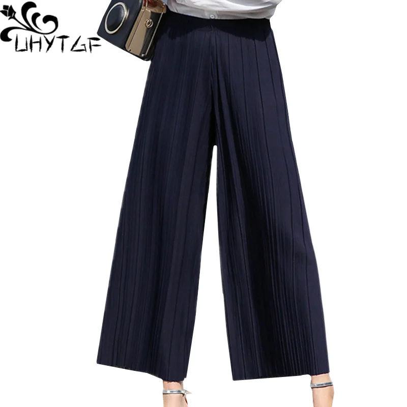 Модные шифоновые брюки UHYTGF с широкими штанинами, летние брюки, женские корейские плиссированные тонкие брюки с высокой талией, женские спортивные брюки 1489