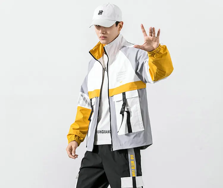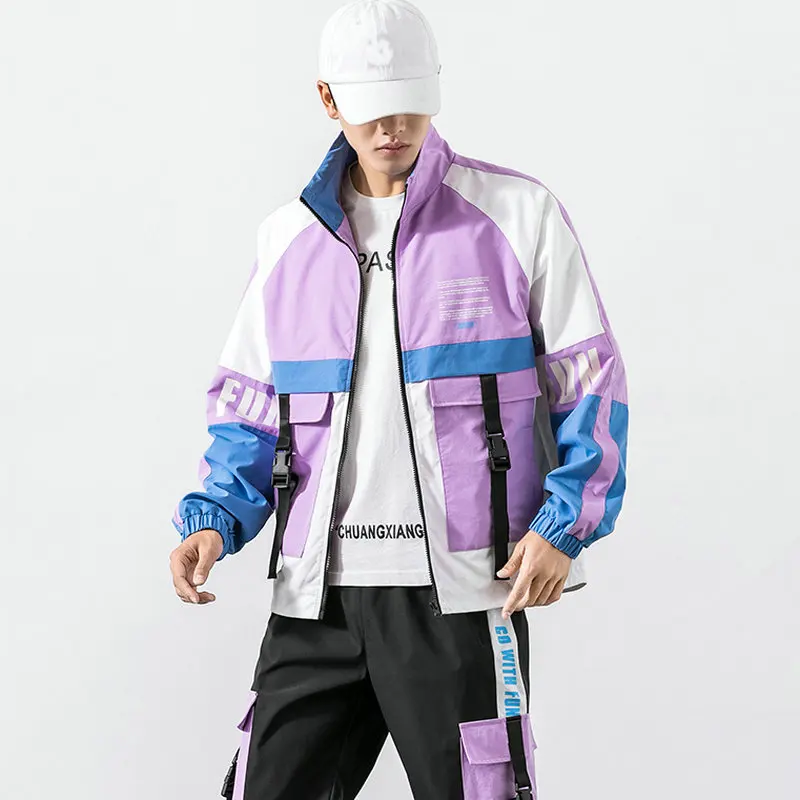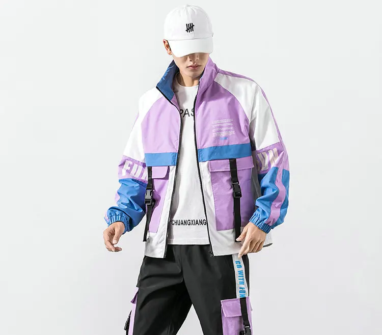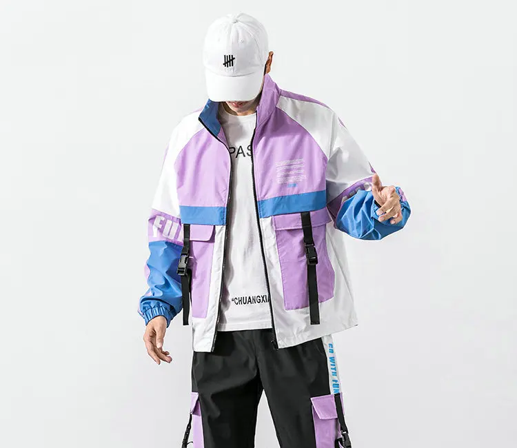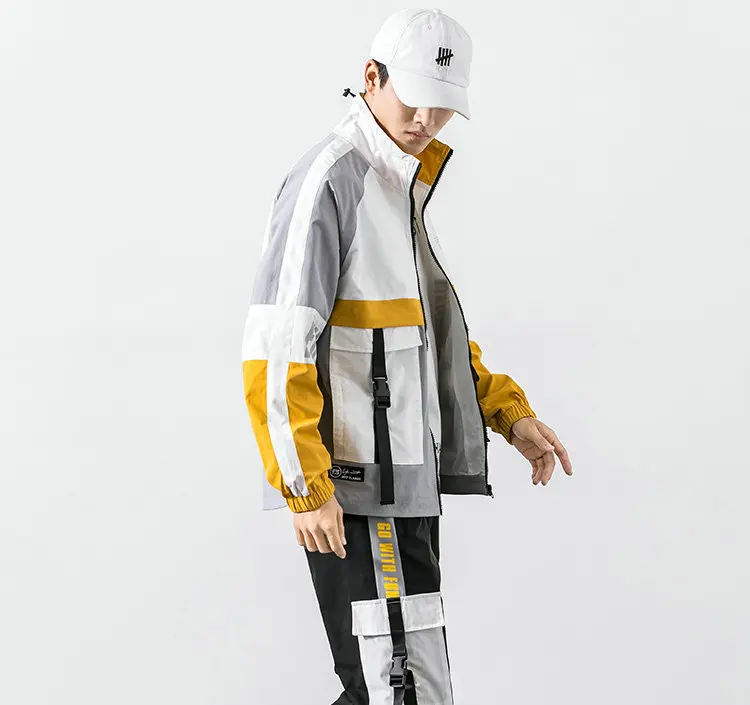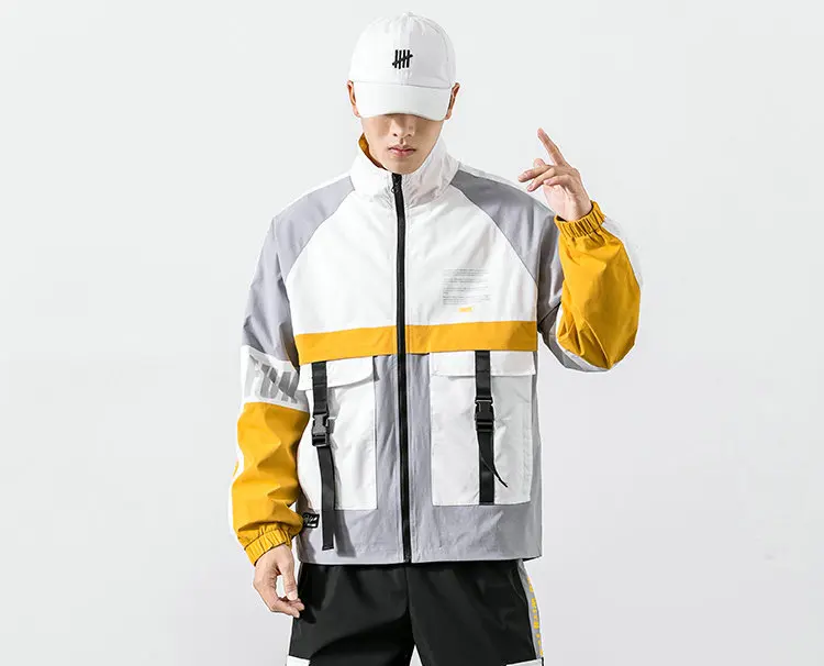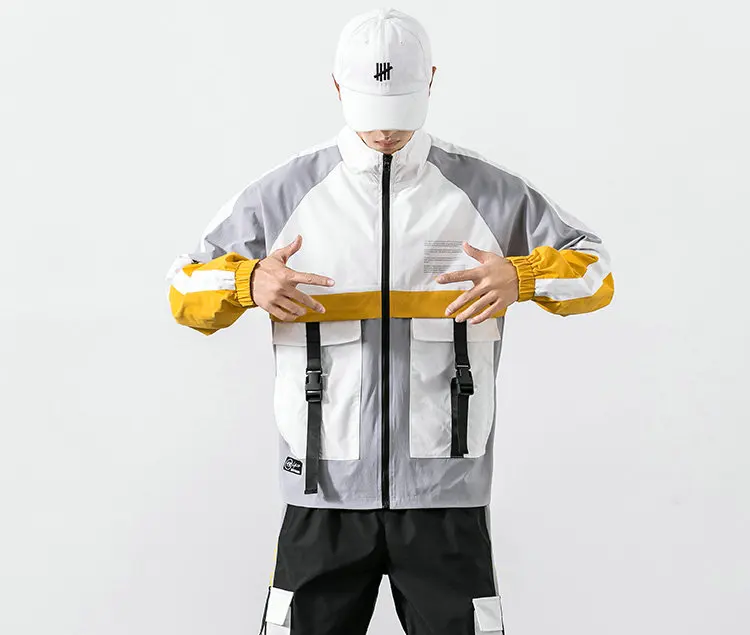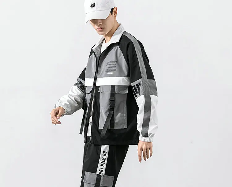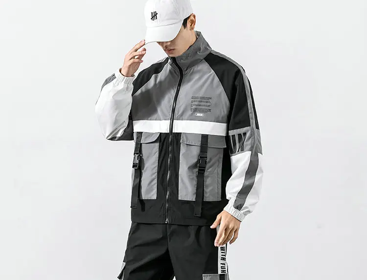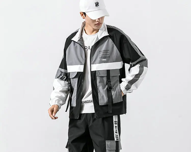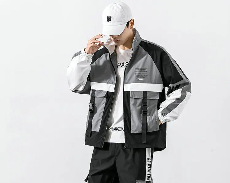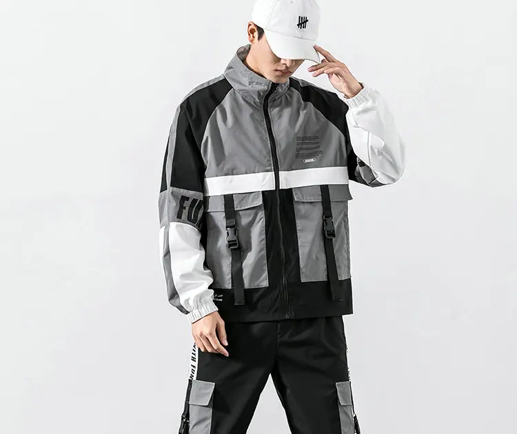 Мужская куртка-бомбер в стиле хип-хоп с надписью, дизайнерская ветровка с лентами, куртка-бомбер, мужские осенние куртки, уличная одежда 2022, мужская верхняя одежда