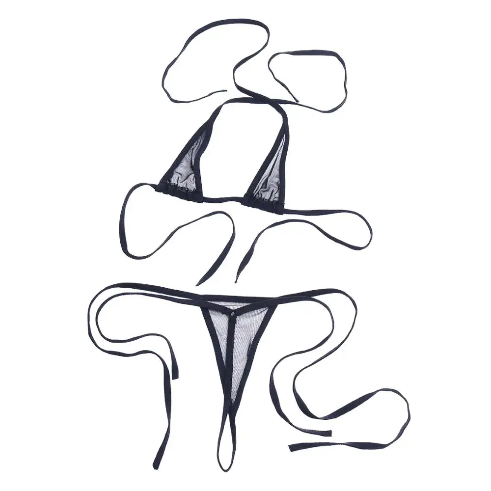 Комплект женского нижнего белья, эротическое прозрачное Сетчатое экстремальное микро бикини, женское нижнее белье, халтер, мини бюстгальтер с чашками-стринги, трусики-танга