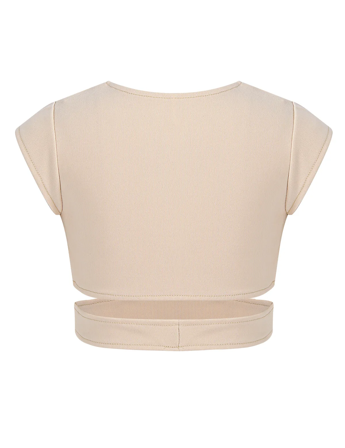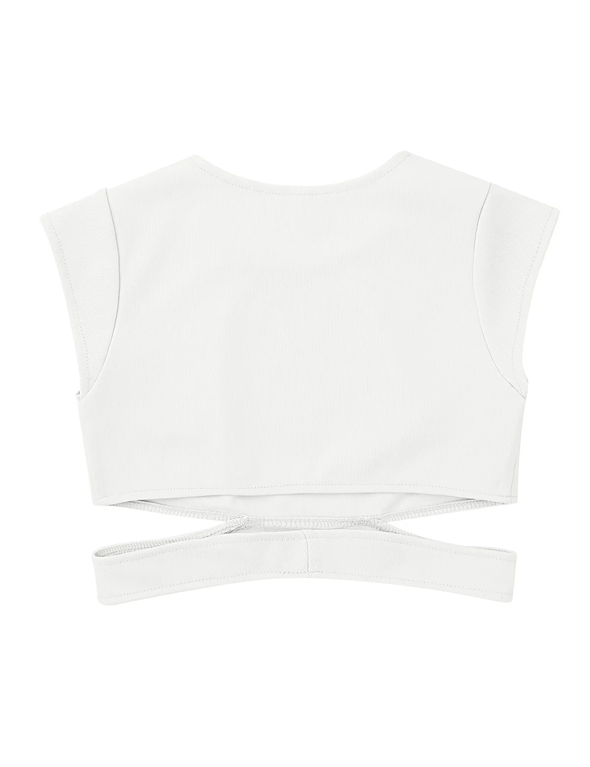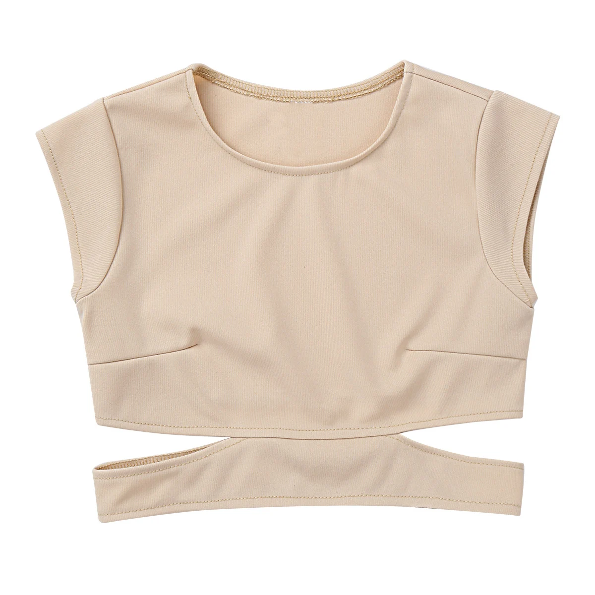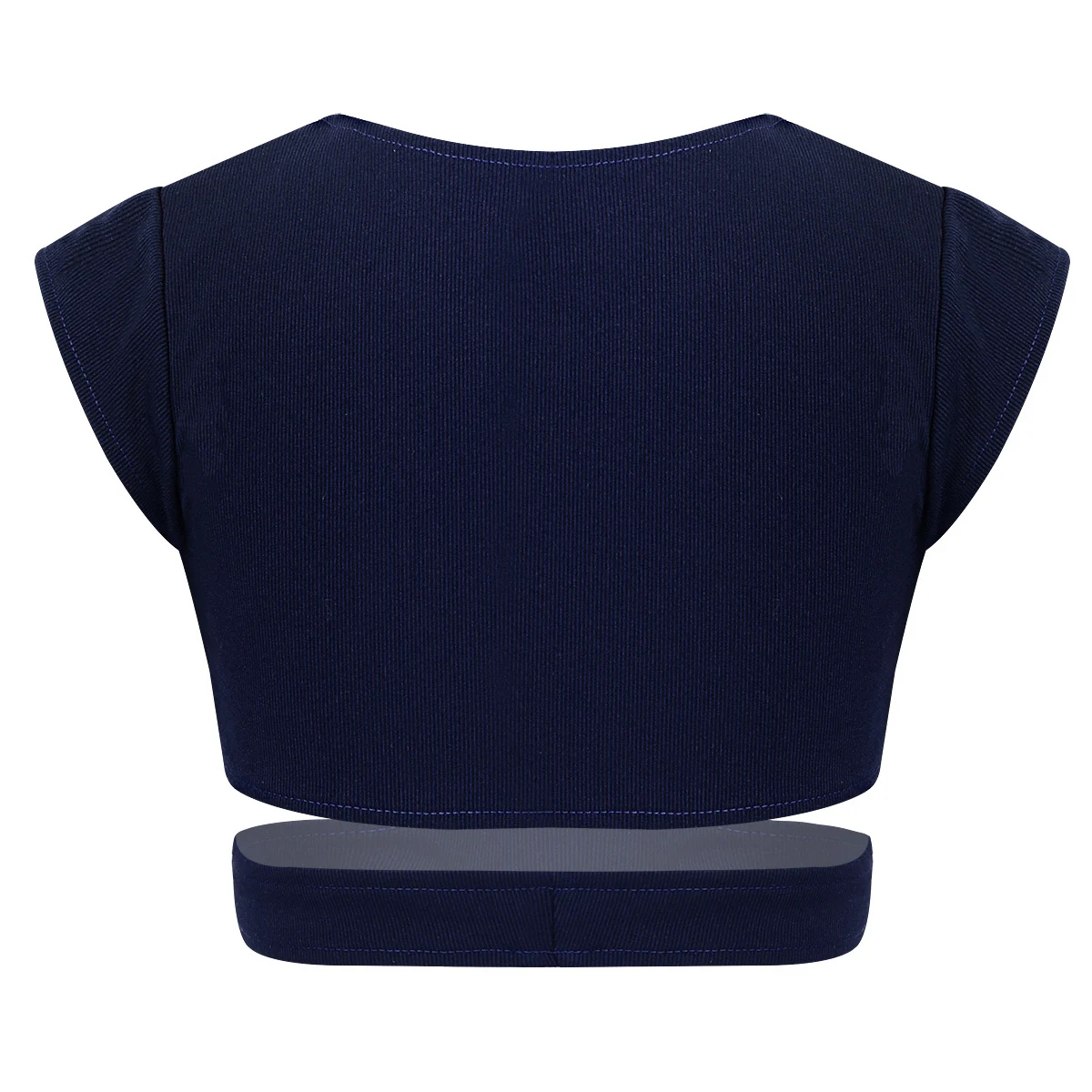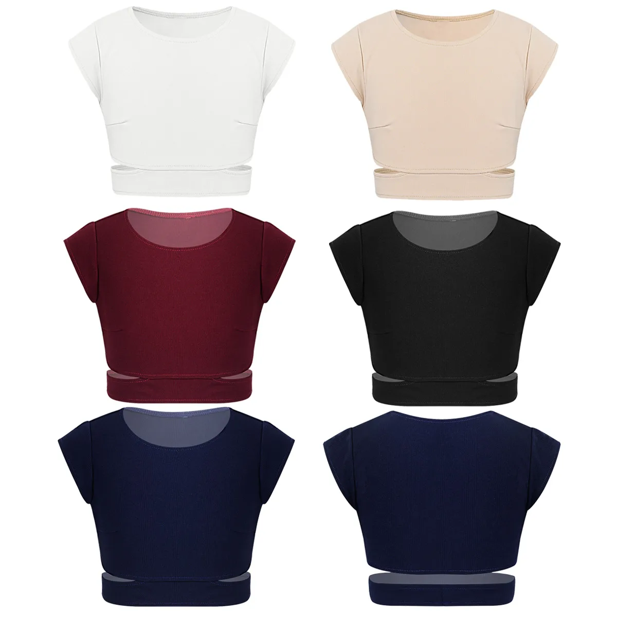 Укороченный топ для девочек с рукавами-крылышками и вырезами на талии, бюстгальтер, топы для танцев, костюм, гимнастический трико, рубашка, спортивная одежда для тренировок