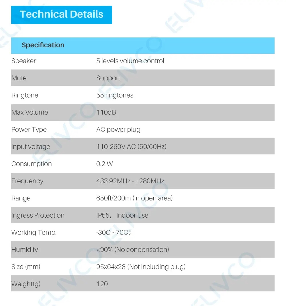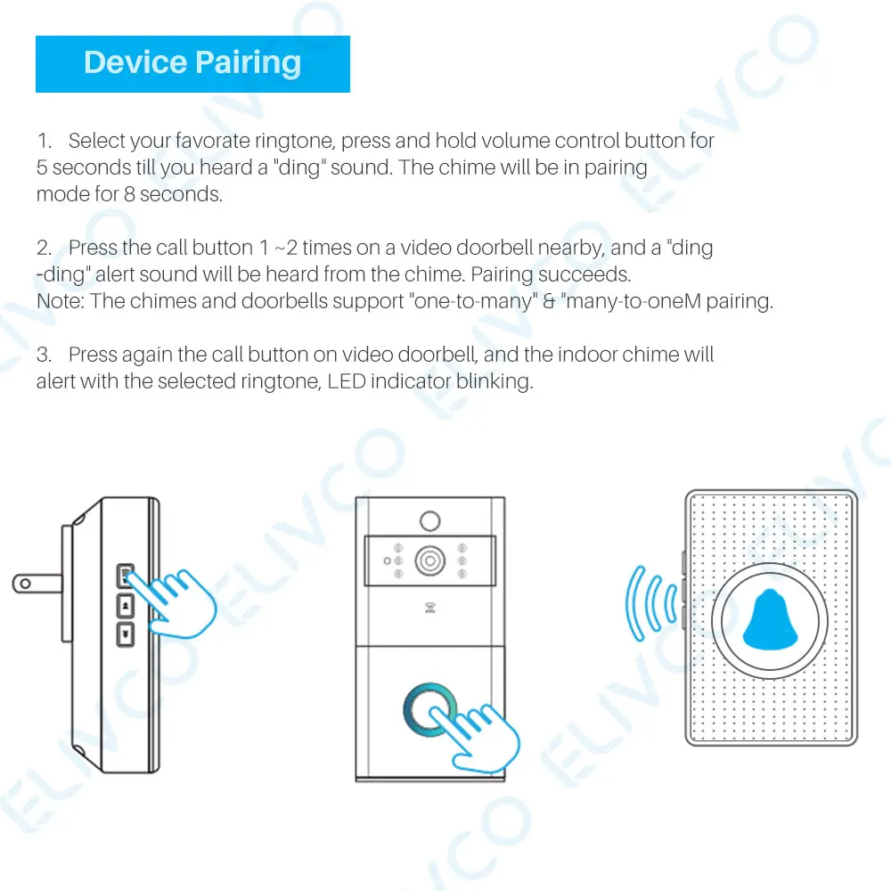 Беспроводной дверной звонок в помещении Chime Ding Dong 100-260 в для видеодомофона WiFi видеодомофон низкая мощность дверной звонок приемник