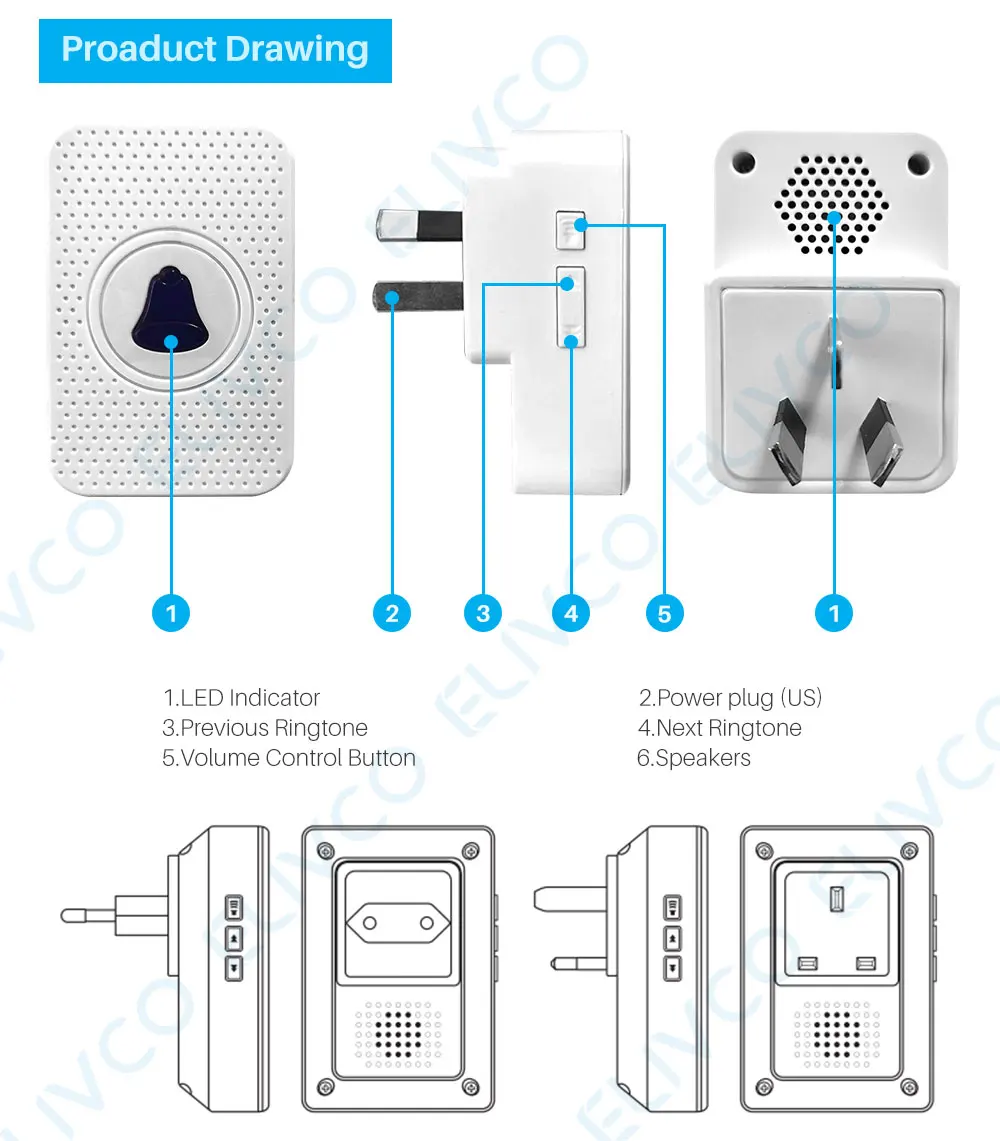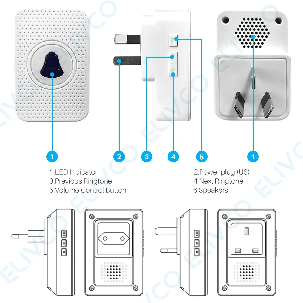 Беспроводной дверной звонок Chime Plug and Play-светодиодный индикатор