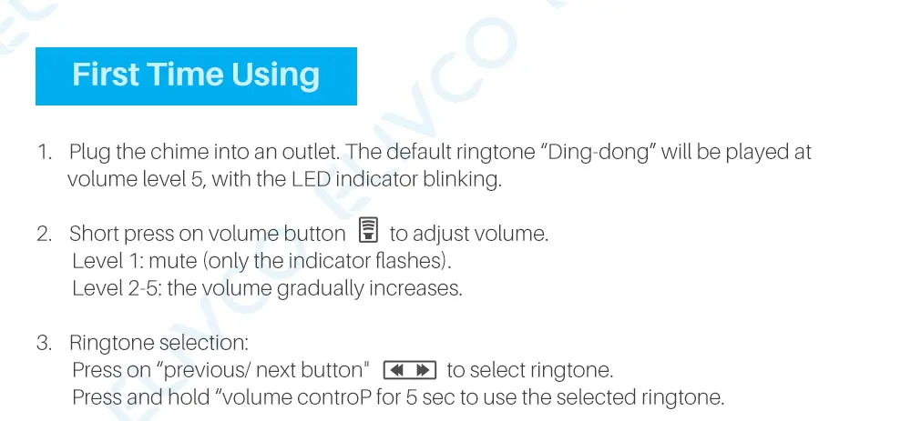 1. Подключите шимпанзе к розетке. Мелодия по умолчанию «Ding-dong» будет воспроизводиться на