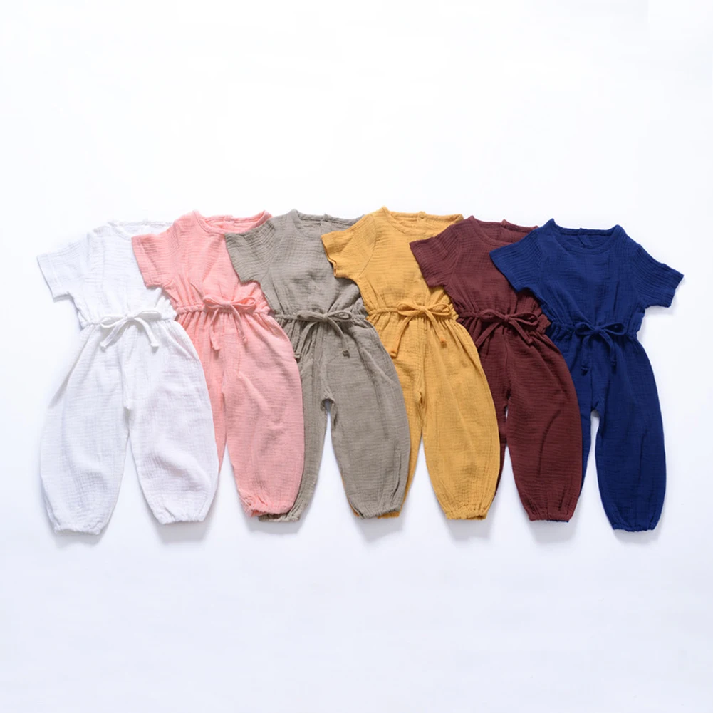 Pudcoco, Одежда для новорожденных мальчиков и девочек, однотонный вязаный хлопковый комбинезон с коротким рукавом, комбинезон, наряд, костюм от солнца, одежда