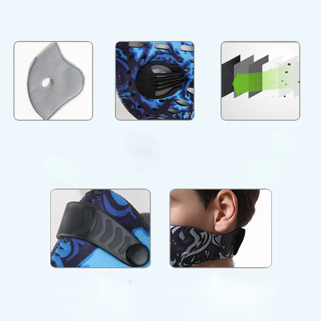 Маска для лица велосипедная с фильтром из активированного угля PM 2,5, пылезащитная с дыхательным клапаном