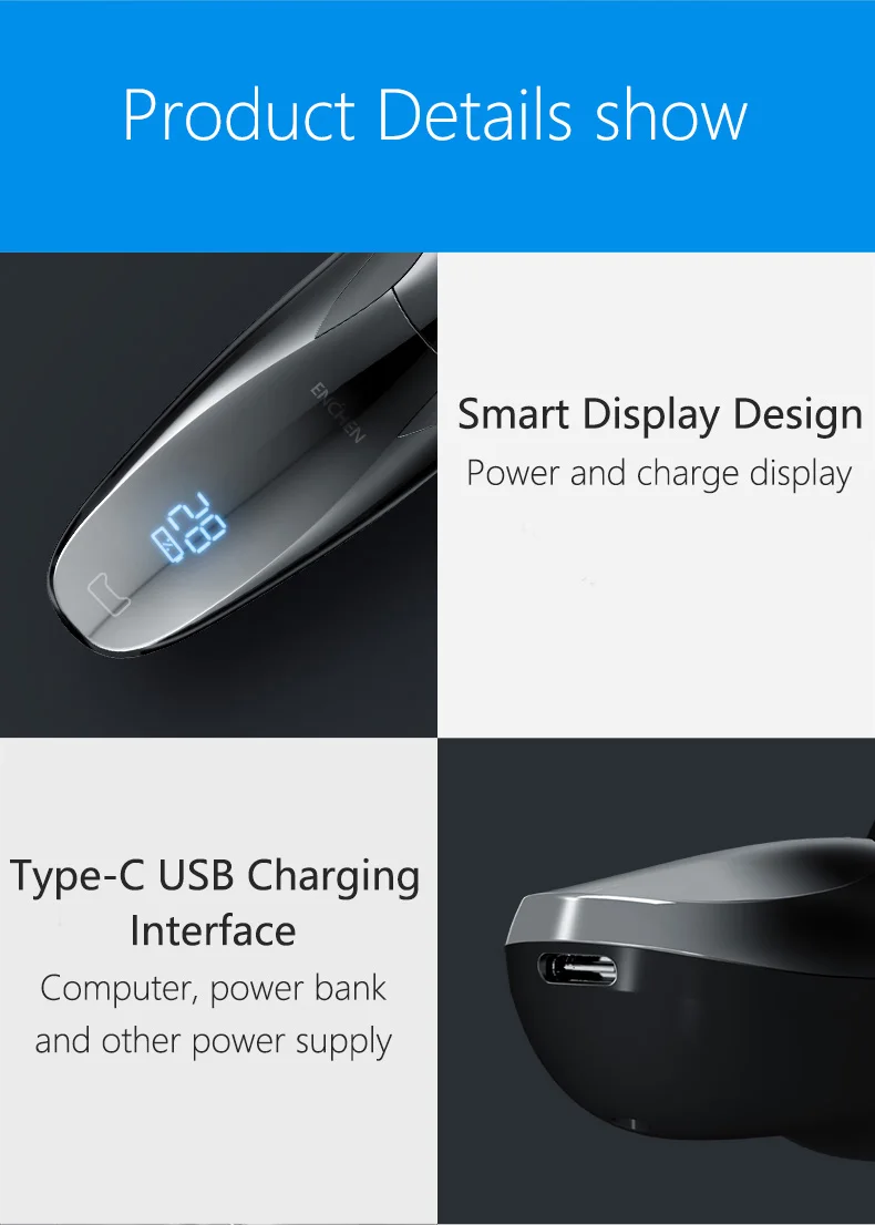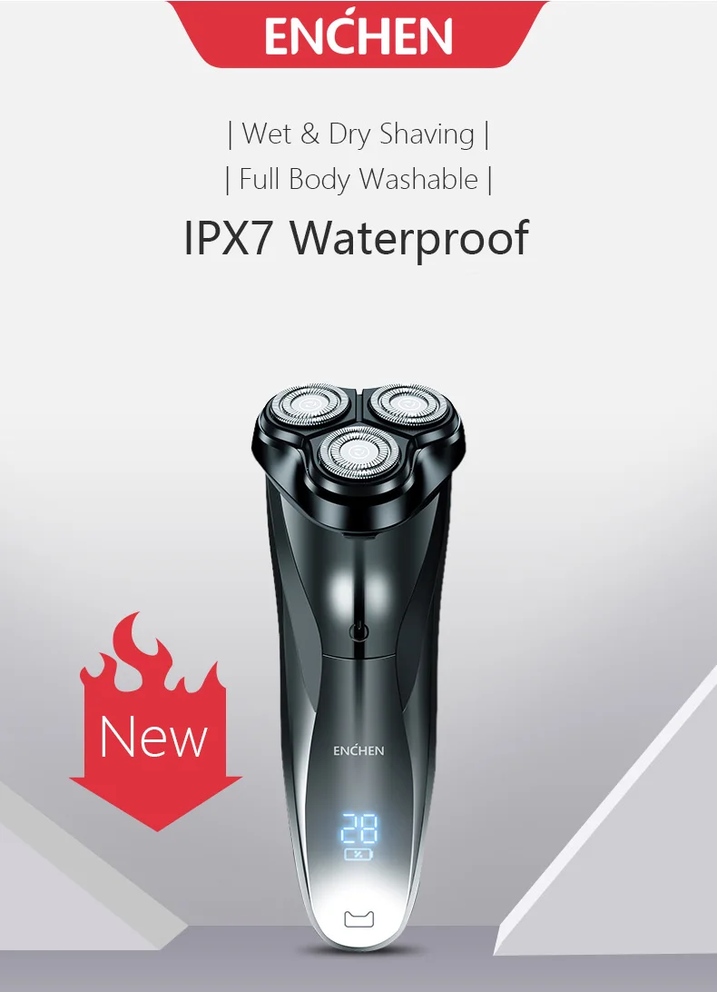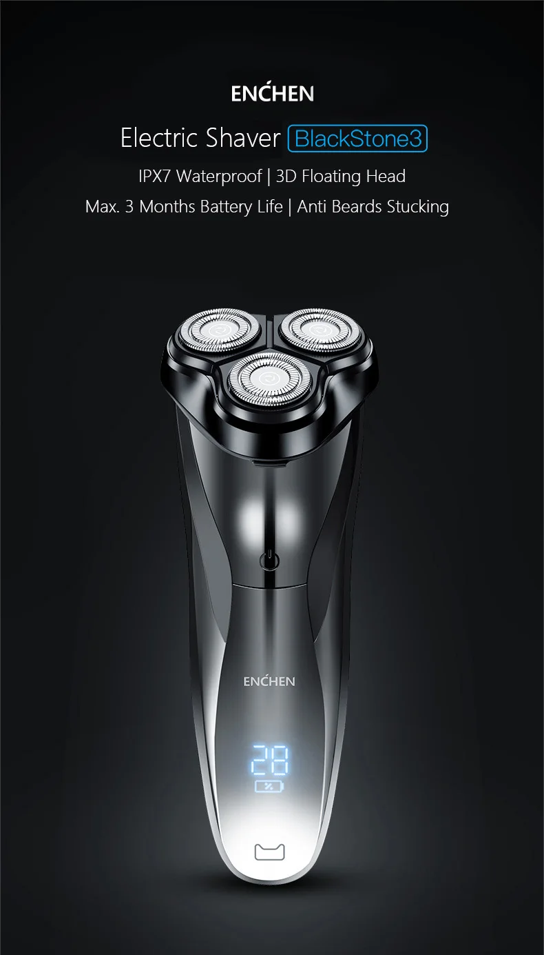 Электробритва для мужчин ENCHEN Blackstone 3, электробритва, с ЖК-дисплеем, перезаряжаемая, водонепроницаемая, IPX7, моющаяся