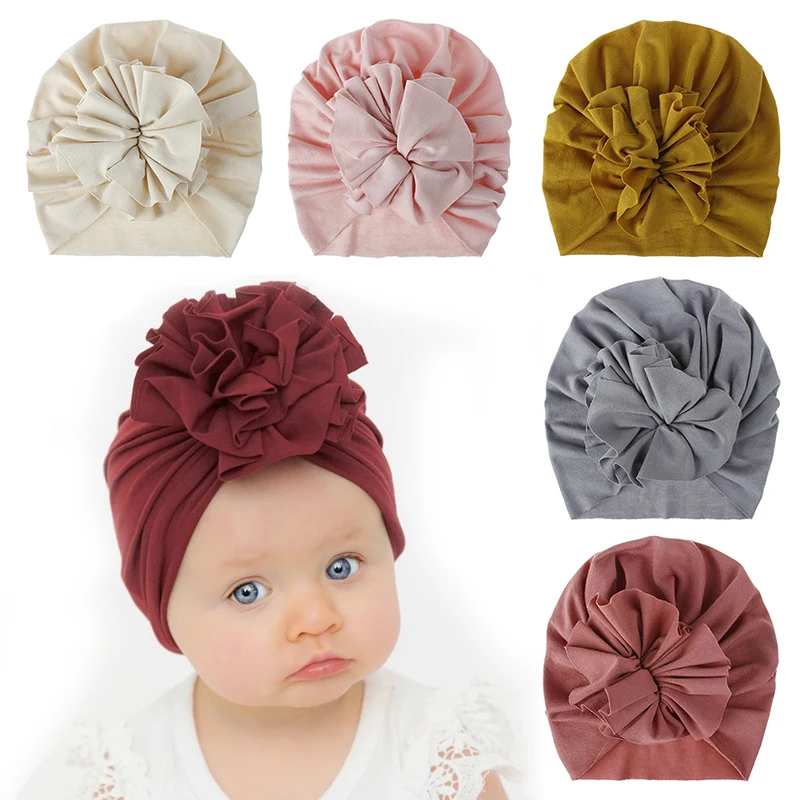 Новинка 2020, милая детская шляпа шапка с цветочным узором для маленьких девочек, мягкая хлопковая детская чалма шапочка, шапочка для новорожденных