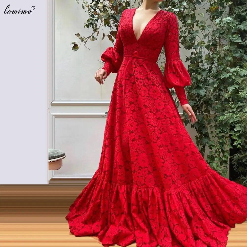 Женское Красное Кружевное торжественное платье знаменитостей с длинными рукавами, Модные платья от кутюр для свадебной вечеринки