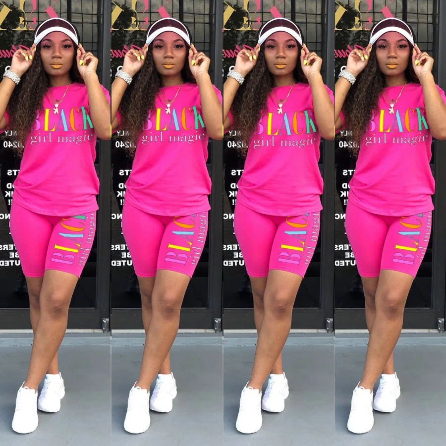 Женский спортивный костюм, комплект из двух предметов, повседневный укороченный топ с буквенным принтом и короткими рукавами, футболка и штаны, костюм, одежда для бега, фитнеса