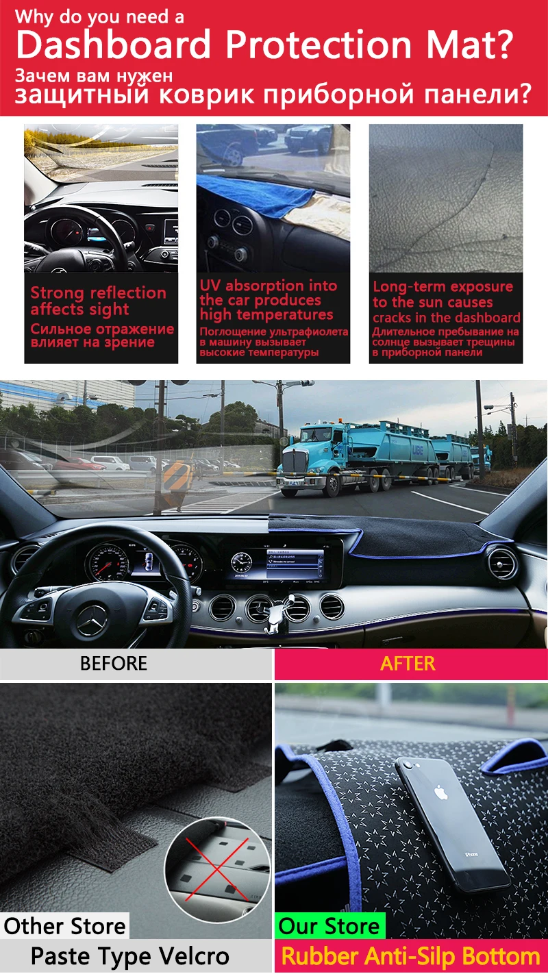 «Гадкий: Этот товар представляет собой коврик для приборной панели, который уникален тем, что имеет нескользящую спинку. Современная ткань не только уменьшает и поглощает блики солнечного света, но и превосходное и красивое украшение интерьера. Основные функции: · Держит интерьер Вашего автомобиля прохладнее летом, а зимой-теплее. · Контуры, подходящие для приборной панели, простота установки · Не сжимается, не выцветает и не искажает, Защищает приборную панель от УФ-лучей · Защищает приборную панель от повреждений от солнца и уменьшает блики
