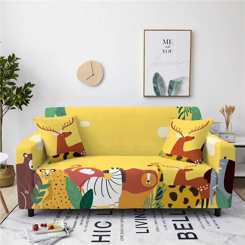 Милый набор чехлов для дивана с мультяшными животными для гостиной, полотенце для дивана, нескользящее L секционное Угловое диванное покрытие, плотное покрытие для дивана