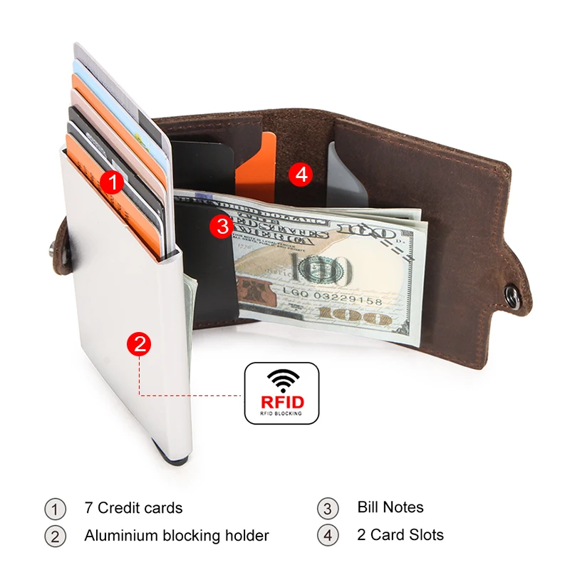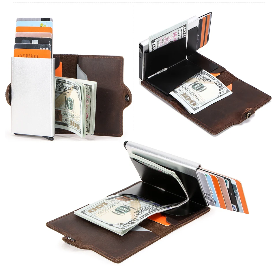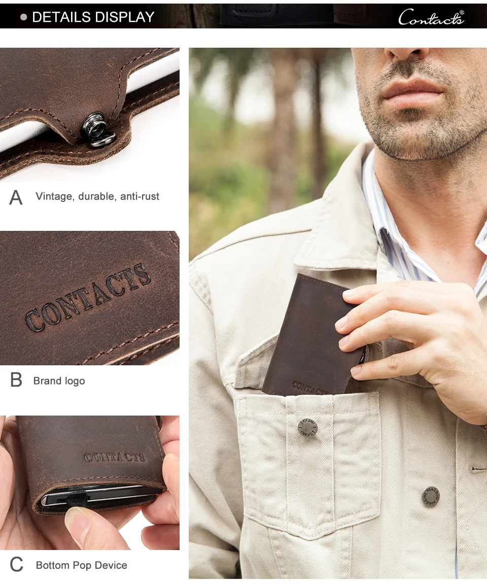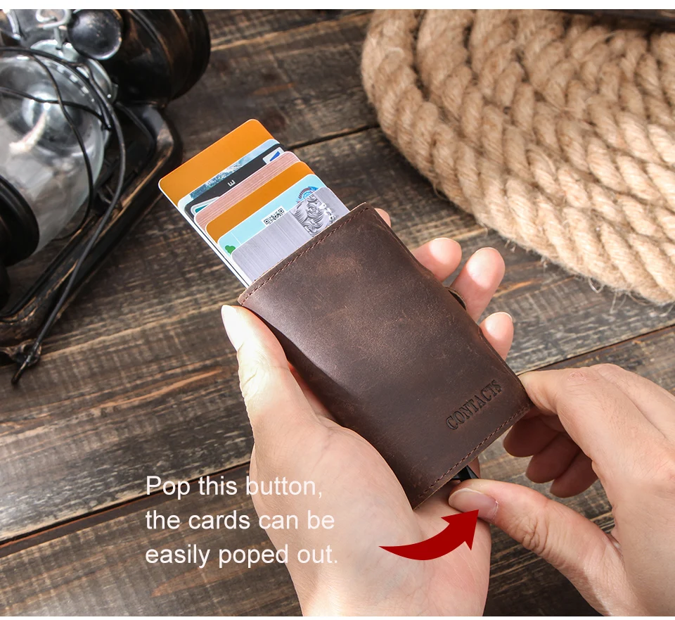 Контакта Новый Crazy Horse кожаный держатель для карт бумажник Для мужчин Бизнес ID карты чехол с функцией блокировки RFID кредитной держатель для карт алюминиевая коробка по индивидуальному заказу