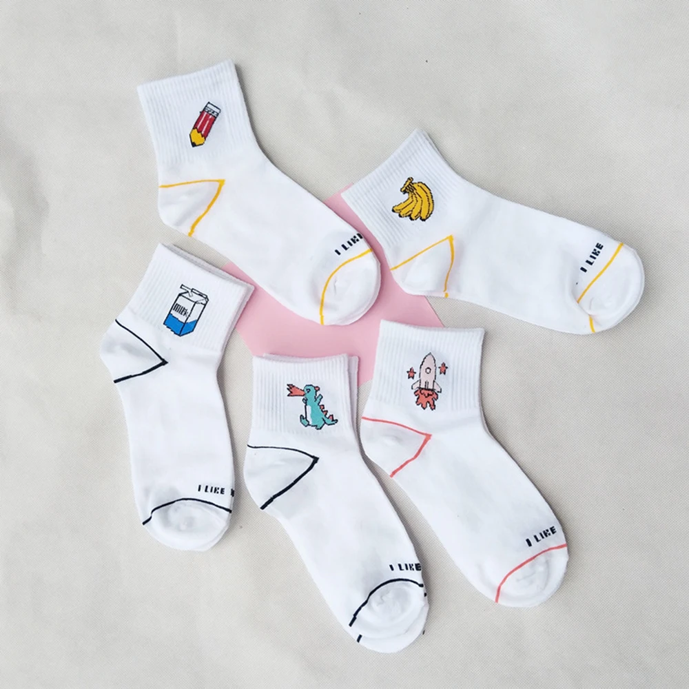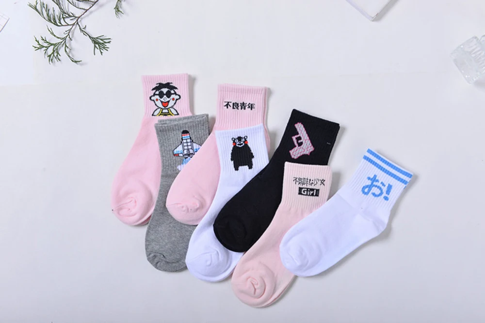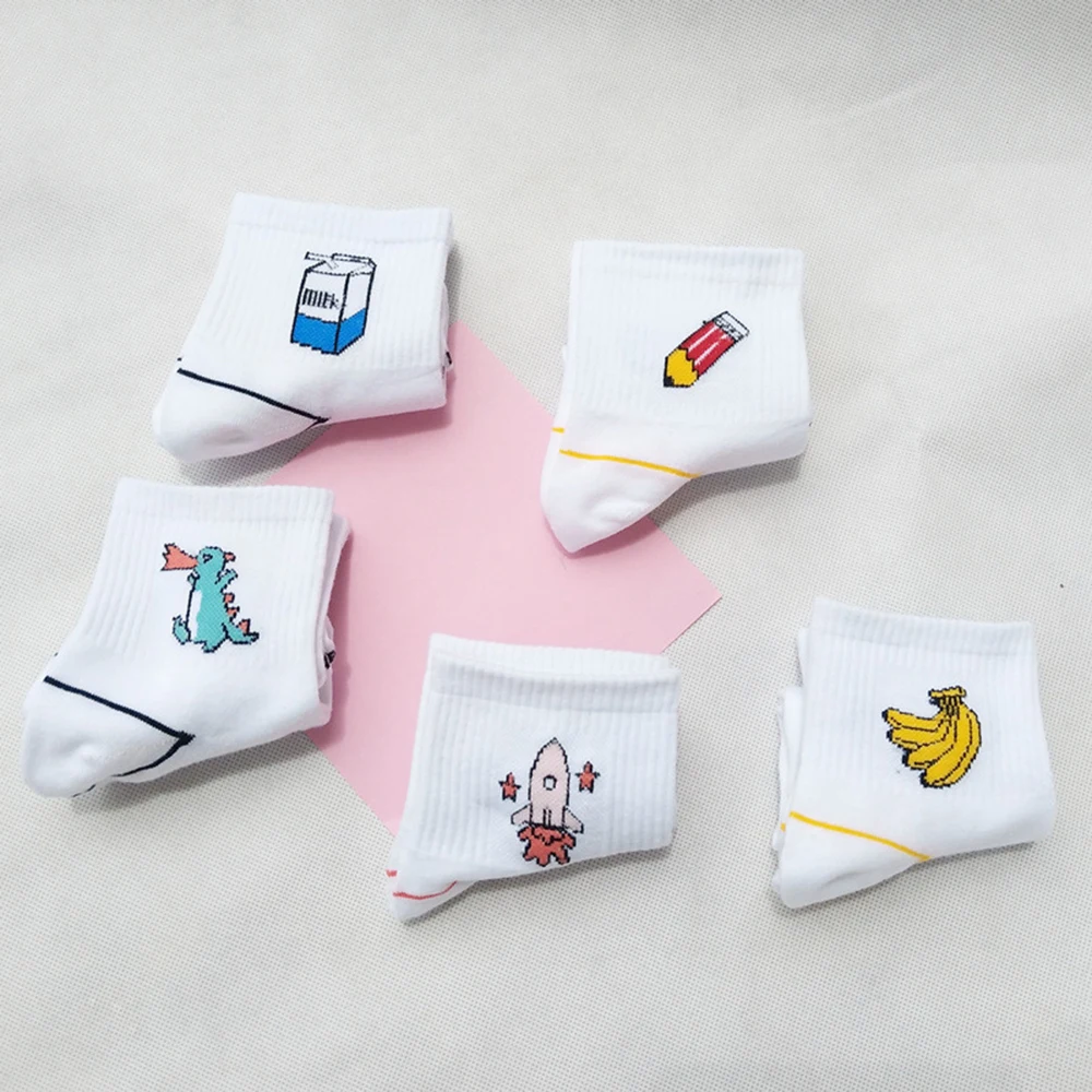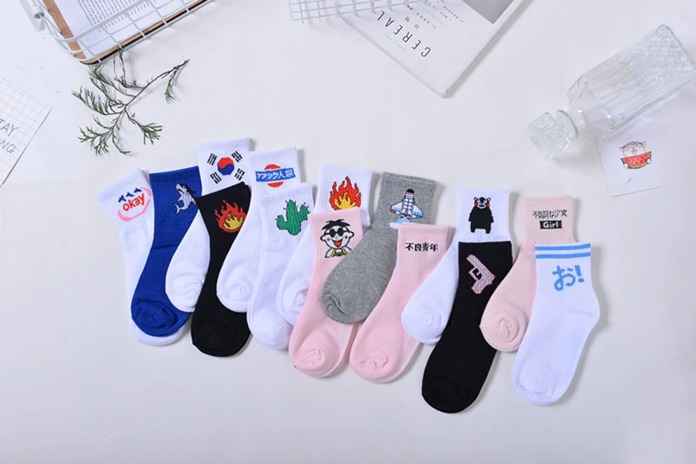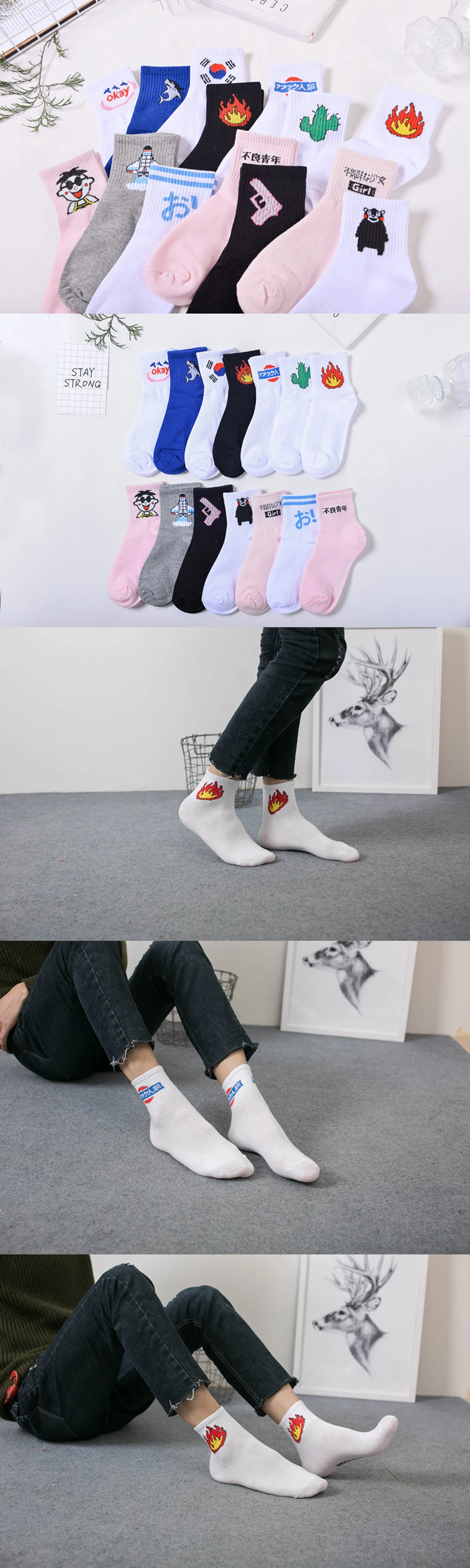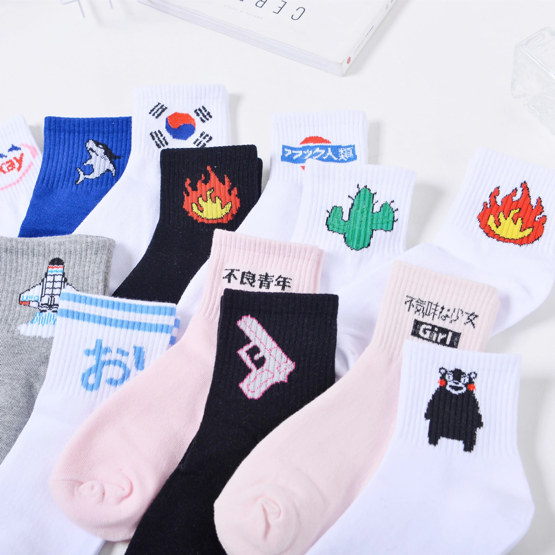 Женские хлопковые носки в стиле Харадзюку, корейский, японский, котенок, пламя, ольчзан, мужские, китайский кактусовый пистолет, Акула, инопланетянин, рождественские носки, носки на каждый день