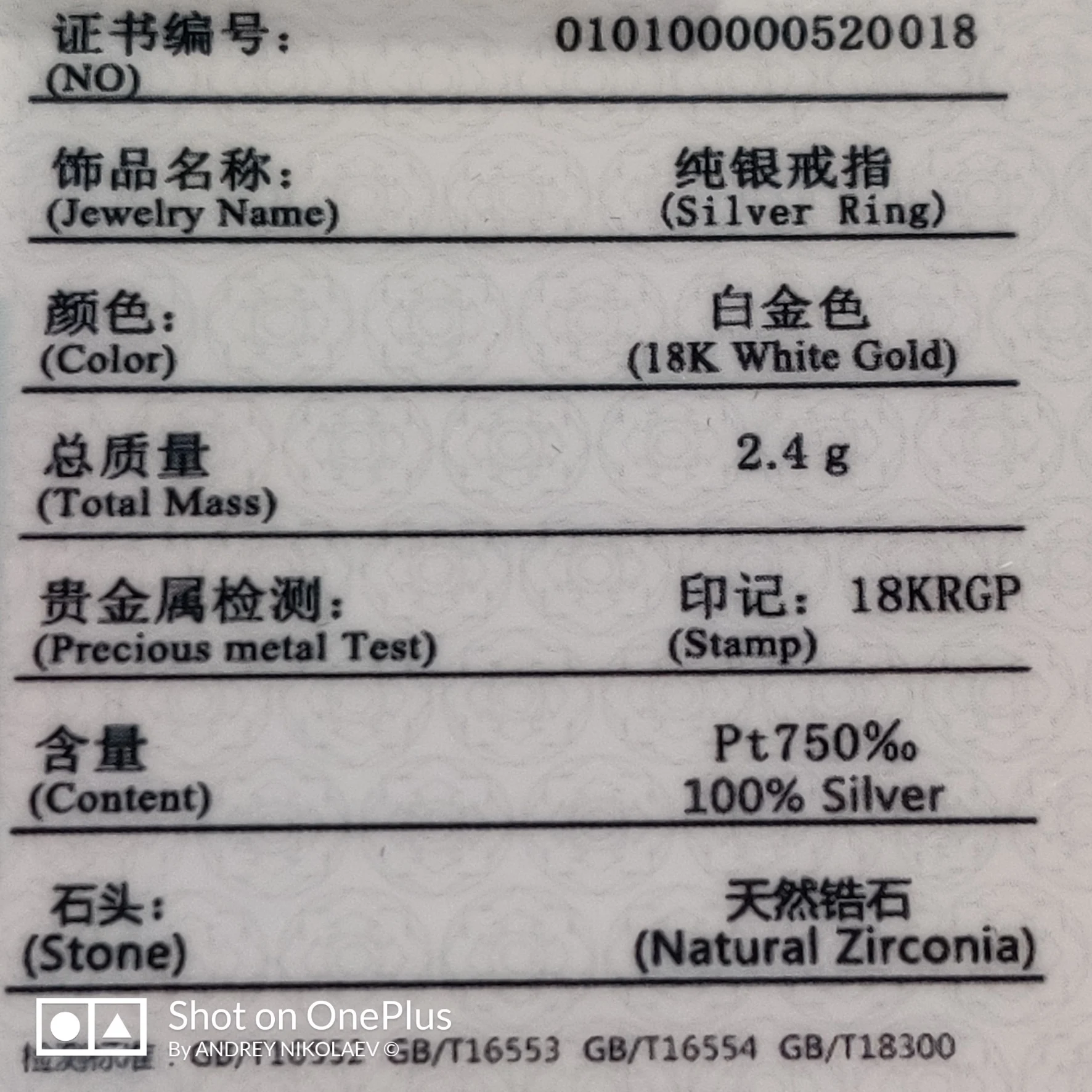 Колечко - Огонь! Понравилось, достойное очень, проба есть, сертификат вызывает сомнения. Но если опустить эту мелочь, то думаю можно принять за настоящую драгоценность. Камешек сверкает! Позже дополню, как будет носиться.