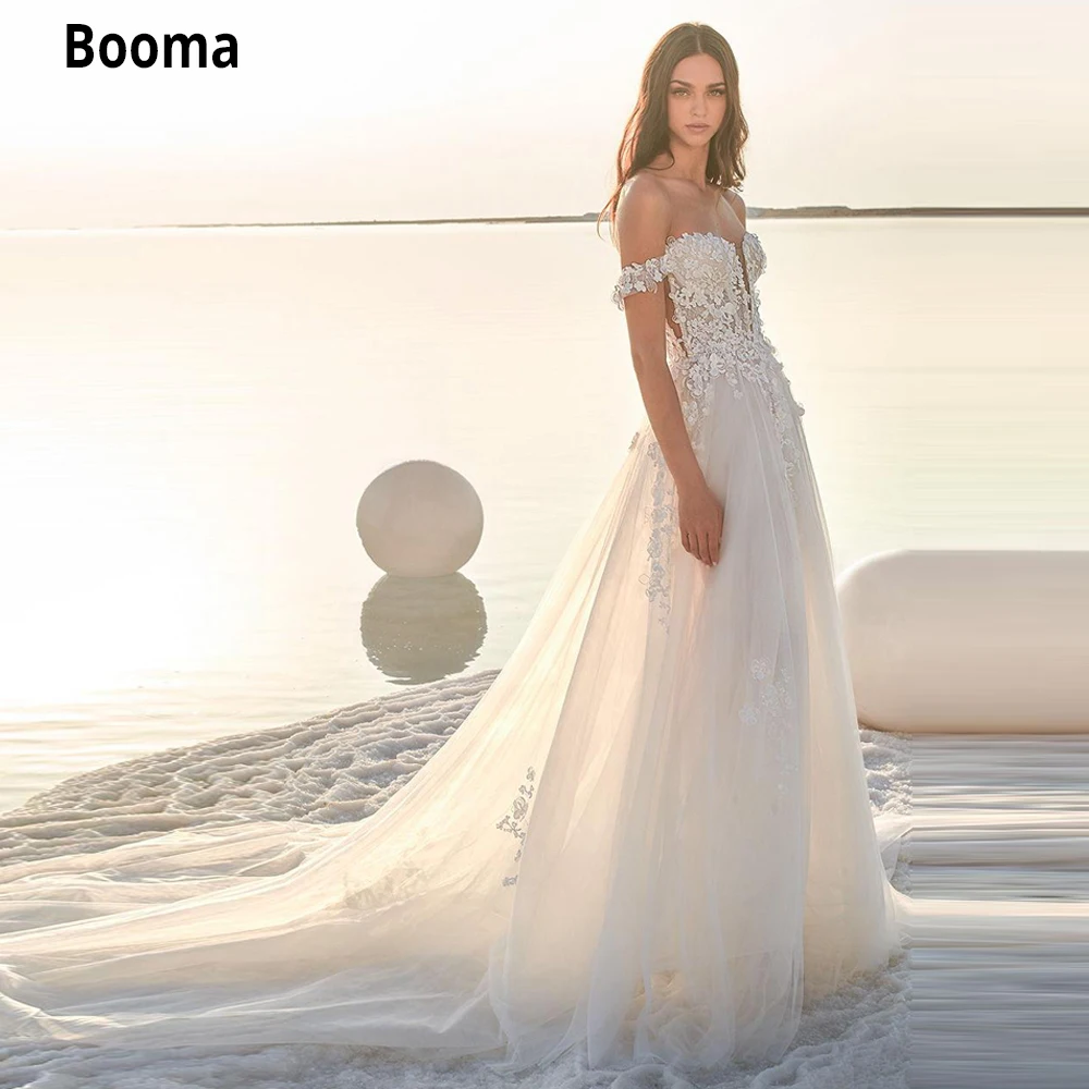 Женское свадебное платье с открытыми плечами Booma, кружевное ТРАПЕ...