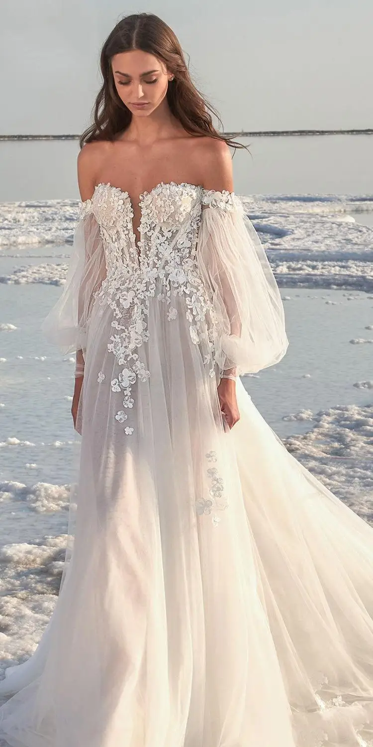 Свадебные платья с открытыми плечами LORIE 2020, кружевные платья с...