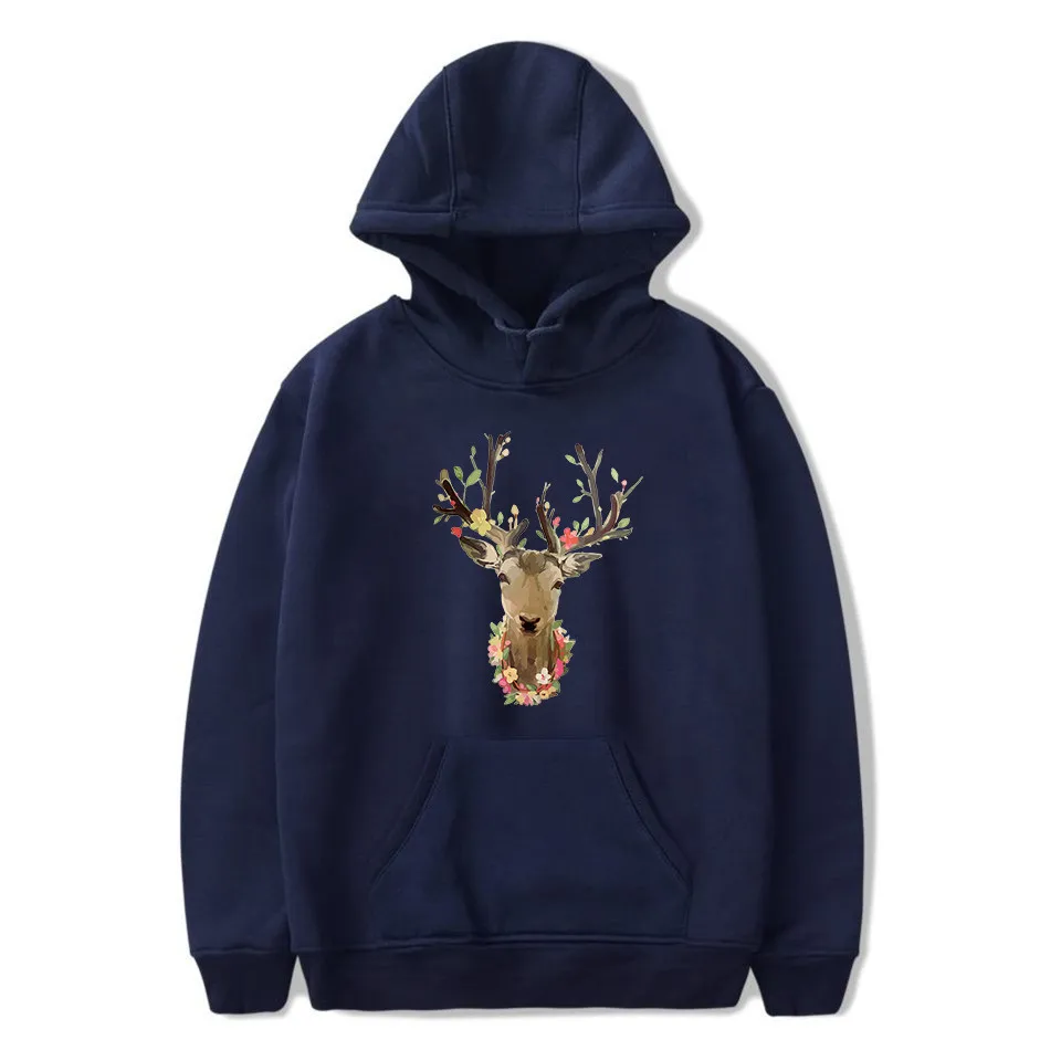 Модные толстовки с капюшоном, повседневные стильные пуловеры с принтом оленя в стиле Харадзюку, свитшоты, Мужская Осенняя толстовка, брендовая куртка, одежда