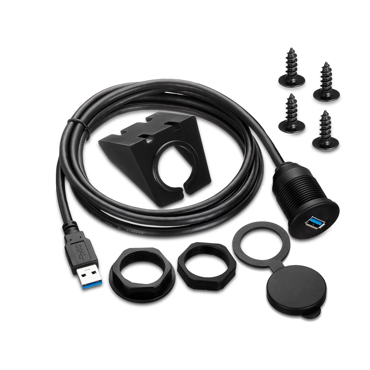 Водонепроницаемый Удлинительный кабель с двумя портами, одним USB 3,0, AUX, монтажный кабель для автомобиля, грузовика, лодки, мотоцикла, приборной панели, 1 м, 2 м
