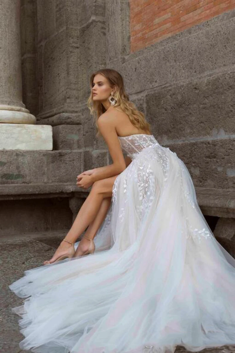 Женское свадебное платье без бретелек, с открытой спиной и кружевом