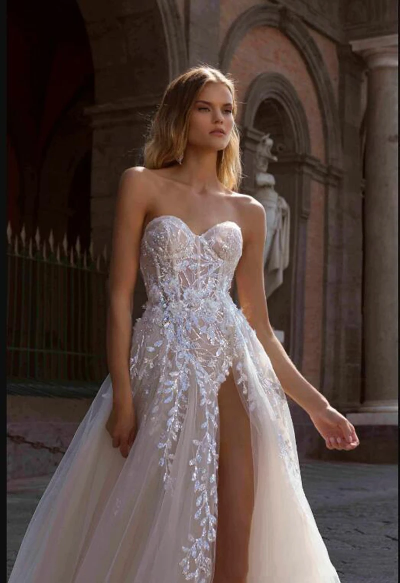 Сексуальное свадебное платье с юбкой-годе, со съемным шлейфом и дли...