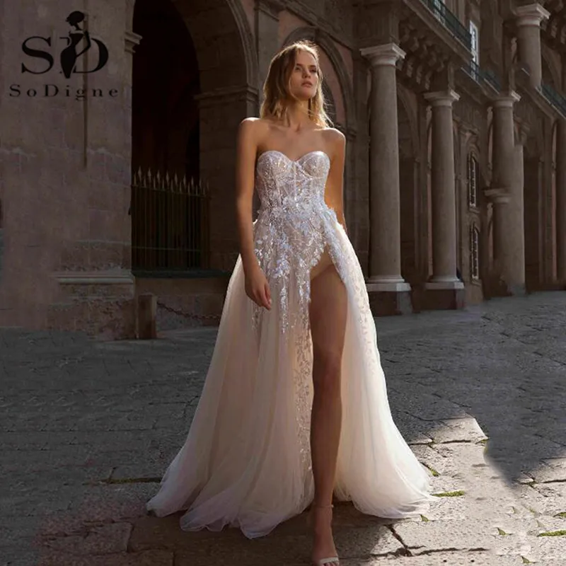 Блестящие Свадебные платья SoDigne в стиле бохо, кружевное ТРАПЕЦИЕ...