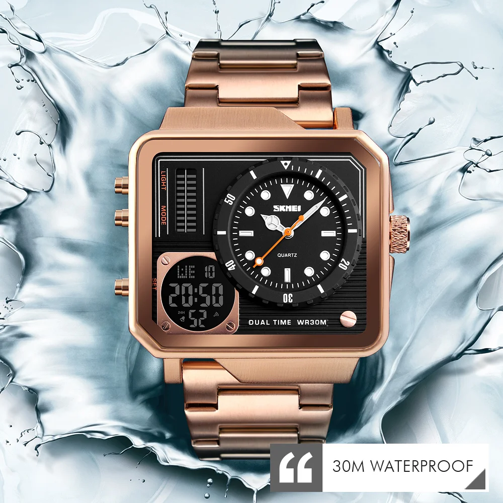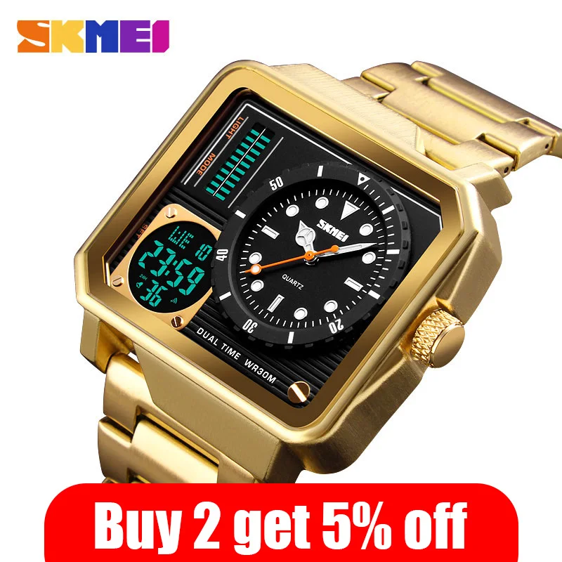 Часы наручные SKMEI мужские с браслетом из нержавеющей стали, Цифровые кварцевые спортивные с секундомером, водонепроницаемость 30 м, 1392