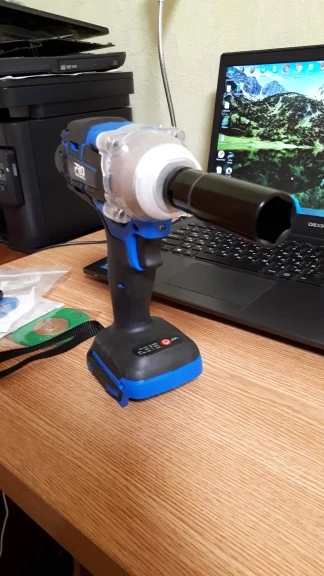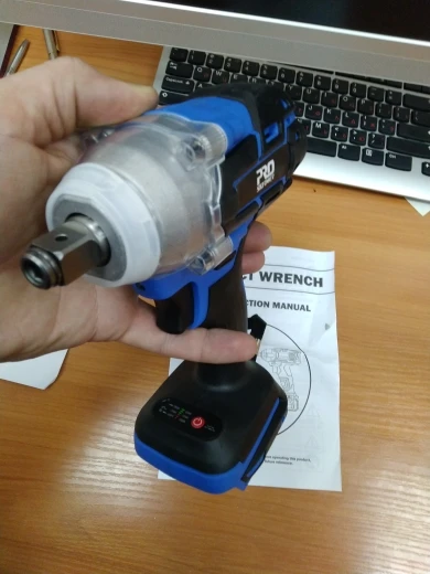 Из двух полученных гайковертов один собран нормально, а вот у второго слегка болтается механизм внутри (слышно если встряхнуть).... Судя по всему, забыли шайбы положить регулировочные на подшипник под планетарку в редукторе. Но при этом работают оба. Гайки крутит-вертит. На откручивание два режима - непрерывный и короткими запусками по две секунды. На завинчивание - три. Не знаю изменяется ли усилие, но скорость закручивания точно меняется. Имеется отверстие в квадрате под держатель бит или непосредственно длинные биты. Саморезы завинчивает легко и глубоко. Как помощник в гараже или по хозяйству вполне пригодится. Продавцу спасибо за реальные скидки!
