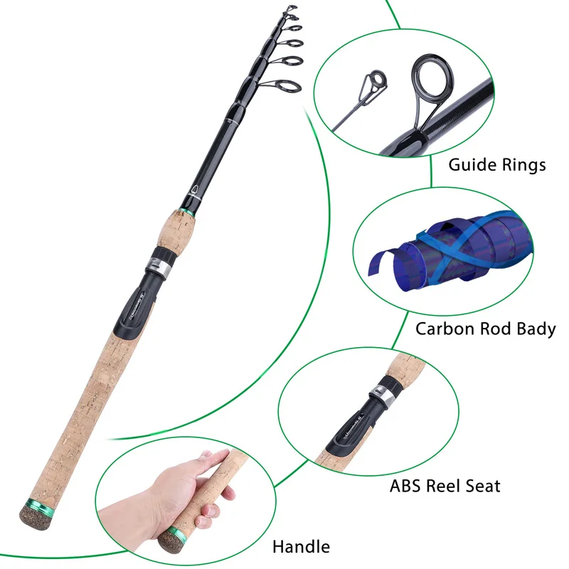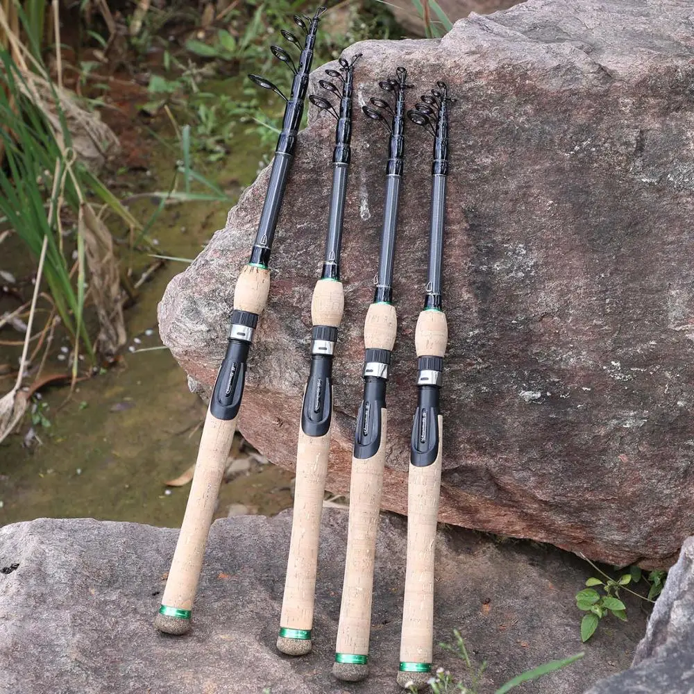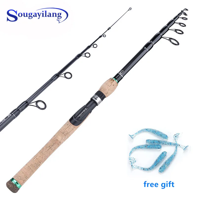 Переносная телескопическая удочка Sougayilang 1,8 м-2,7 м, пробковая деревянная ручка, спиннинг, удочка из углеродного волокна, дорожная удочка