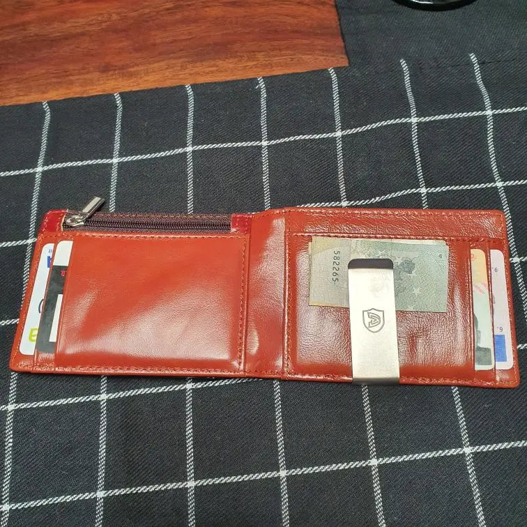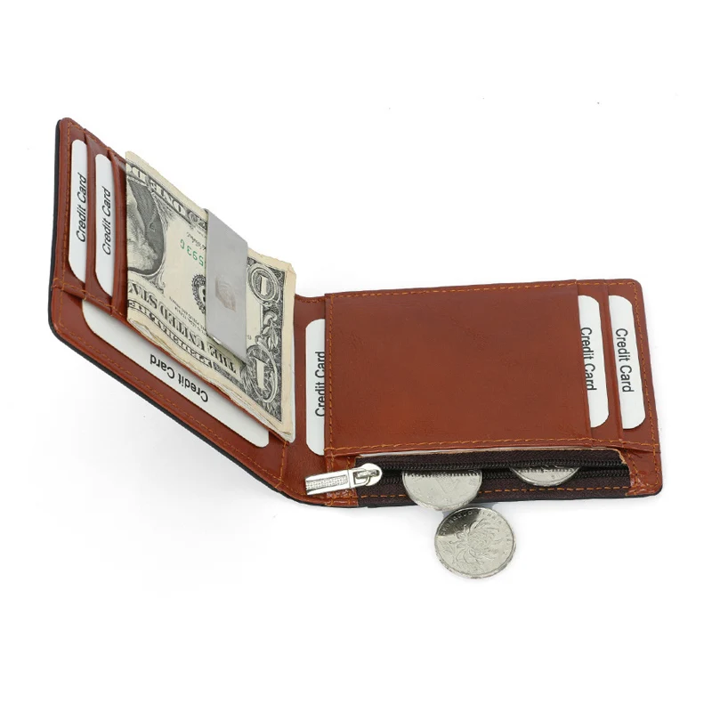 Кошелек мужской из натуральной кожи, с отделением для монет, кредитных карт, с металлическим зажимом