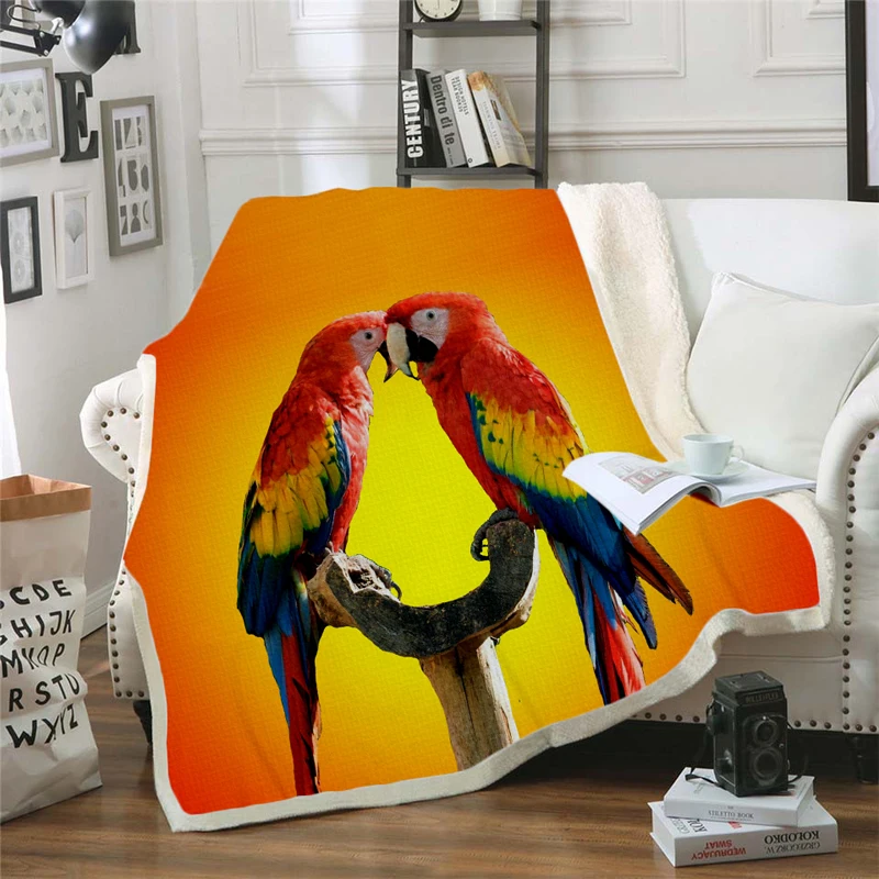 Флисовое одеяло для кровати с 3D принтом попугаев, толстое одеяло, модное покрывало, покрывало из шерпы, одеяло для взрослых и детей 09