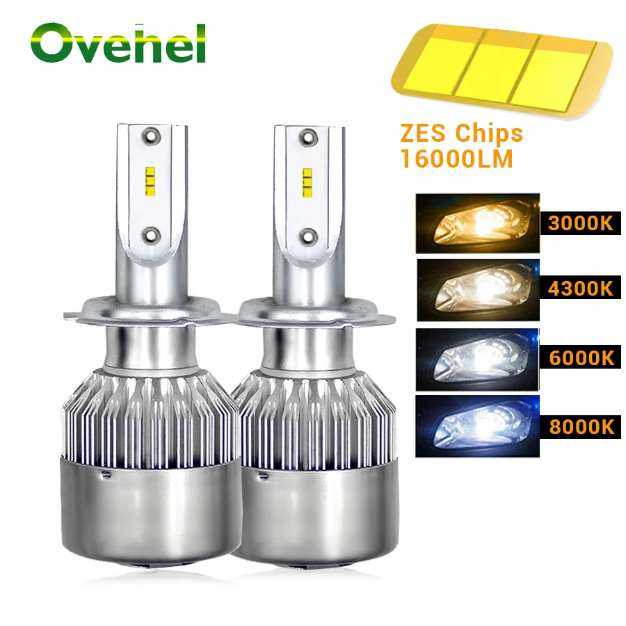 Ovehel зэс 16000LM светодиодный головной светильник светодиодный H7 H4 автомобильный Светильник лампы H1 H11 H3 9005 9006 HB4 12V 3000K 4300 К 6000 противотуманных фар авто лампы C6