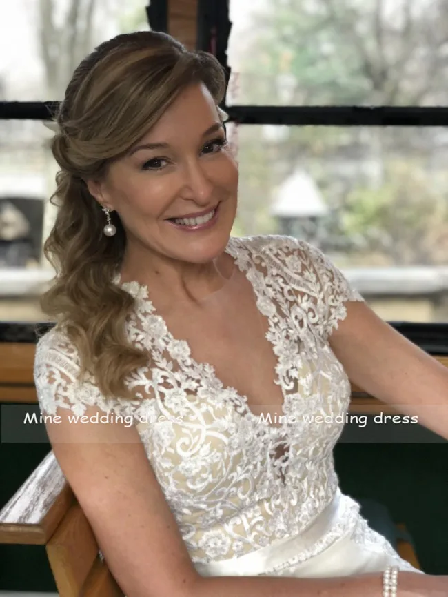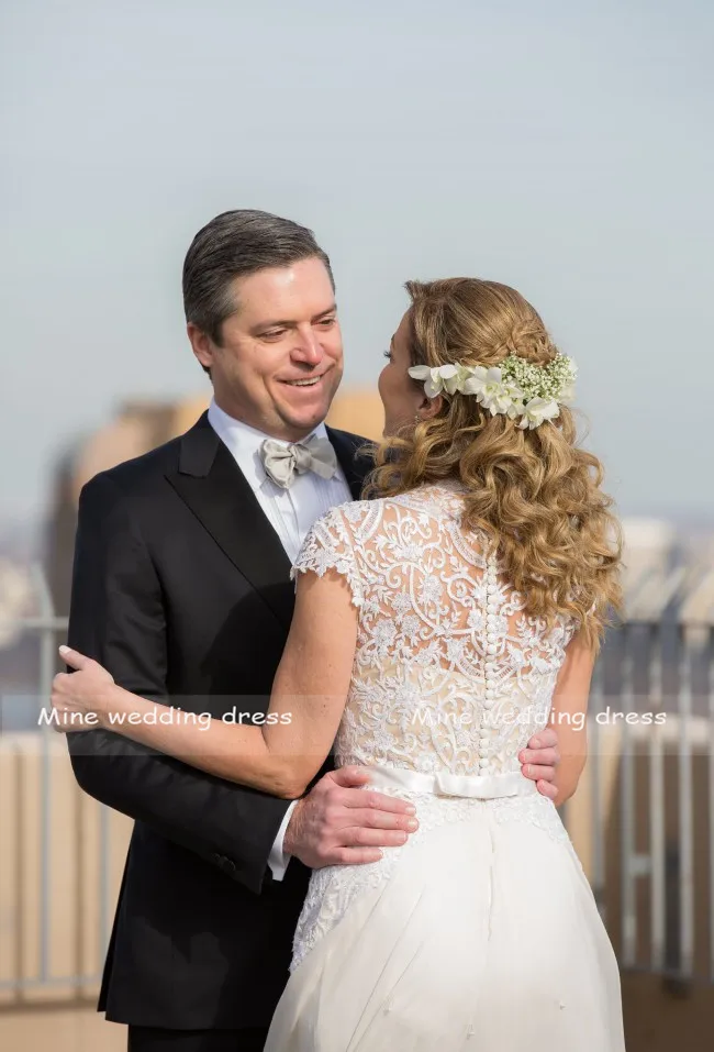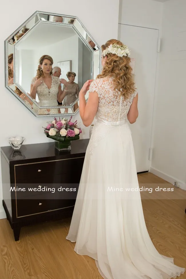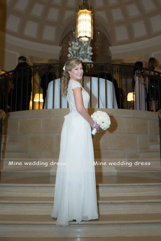 Шифоновое свадебное платье с кружевным круглым вырезом и рукавом-крылышком