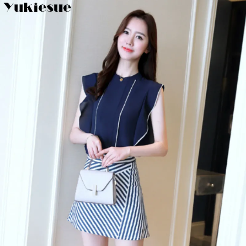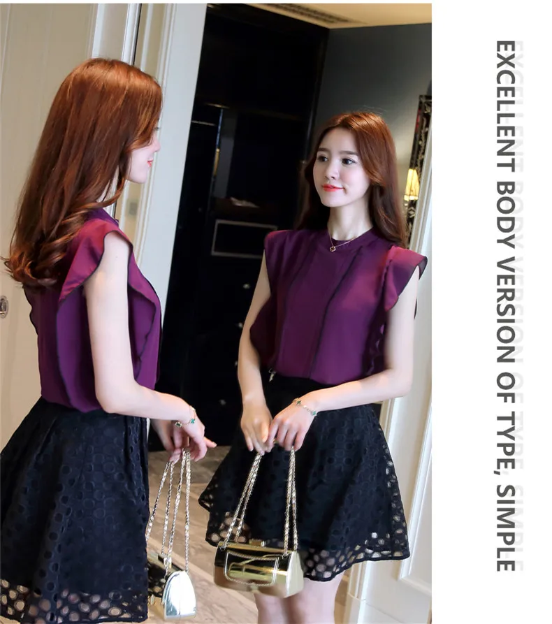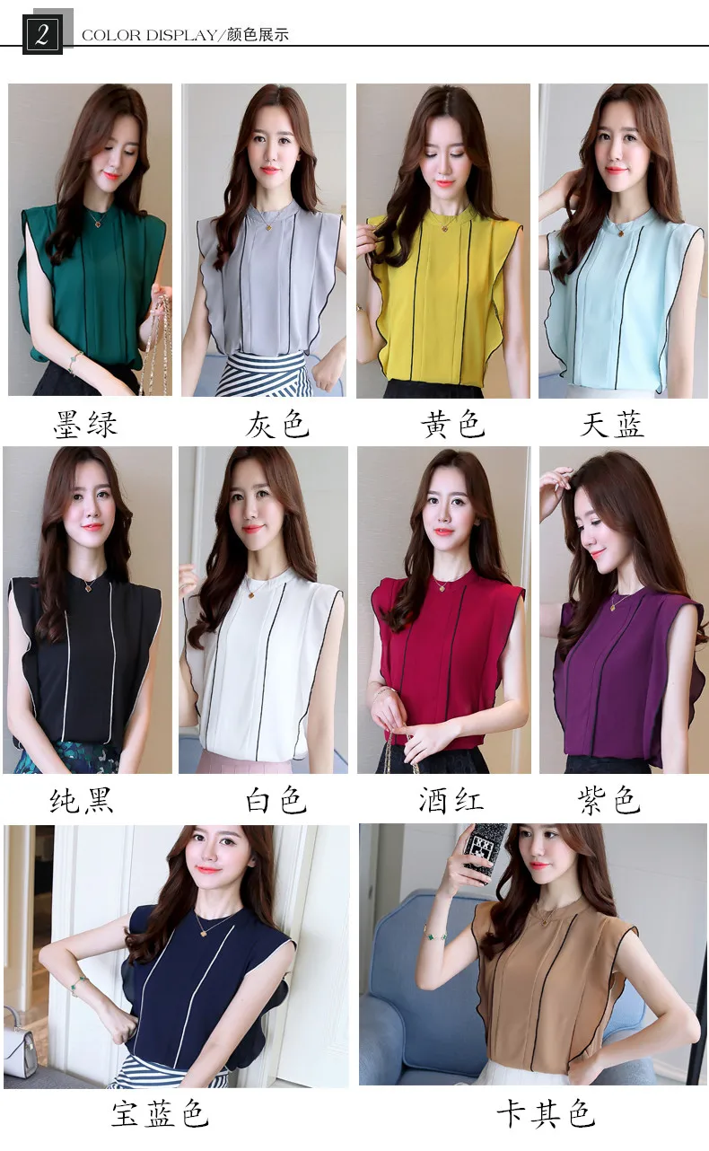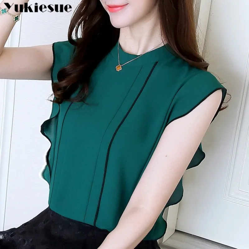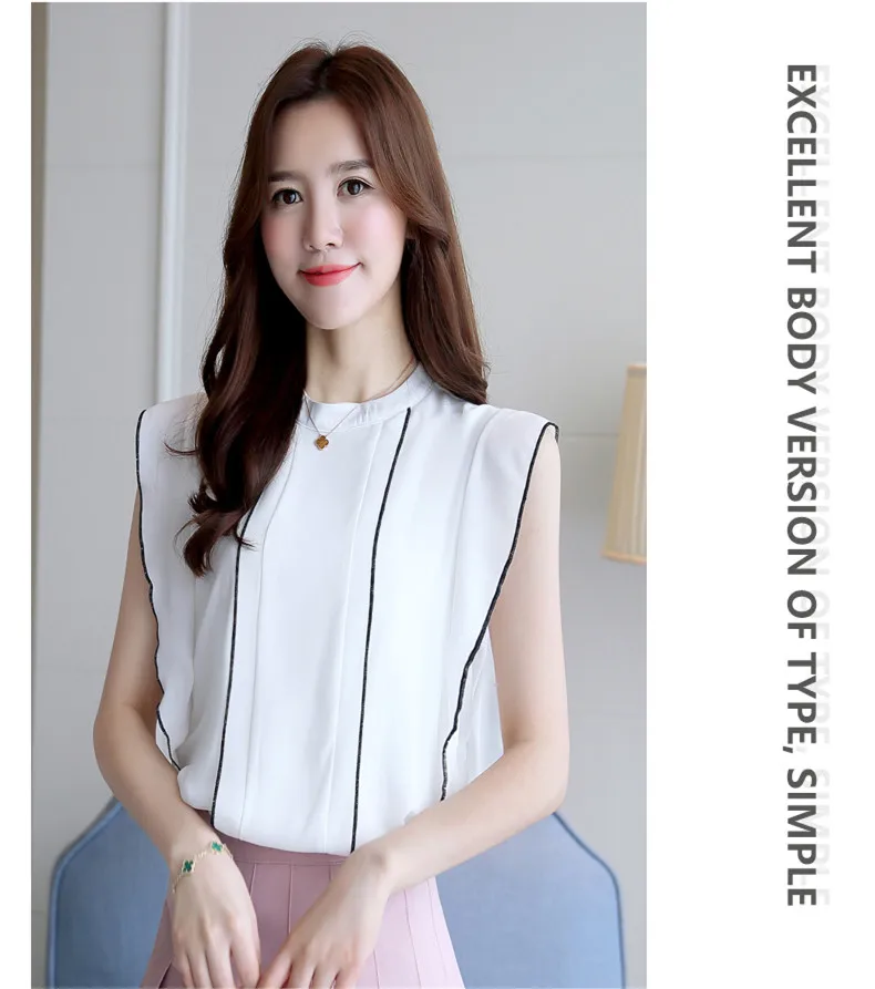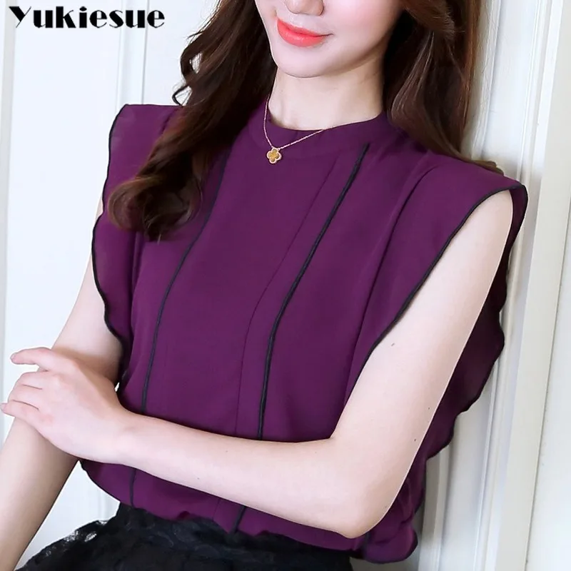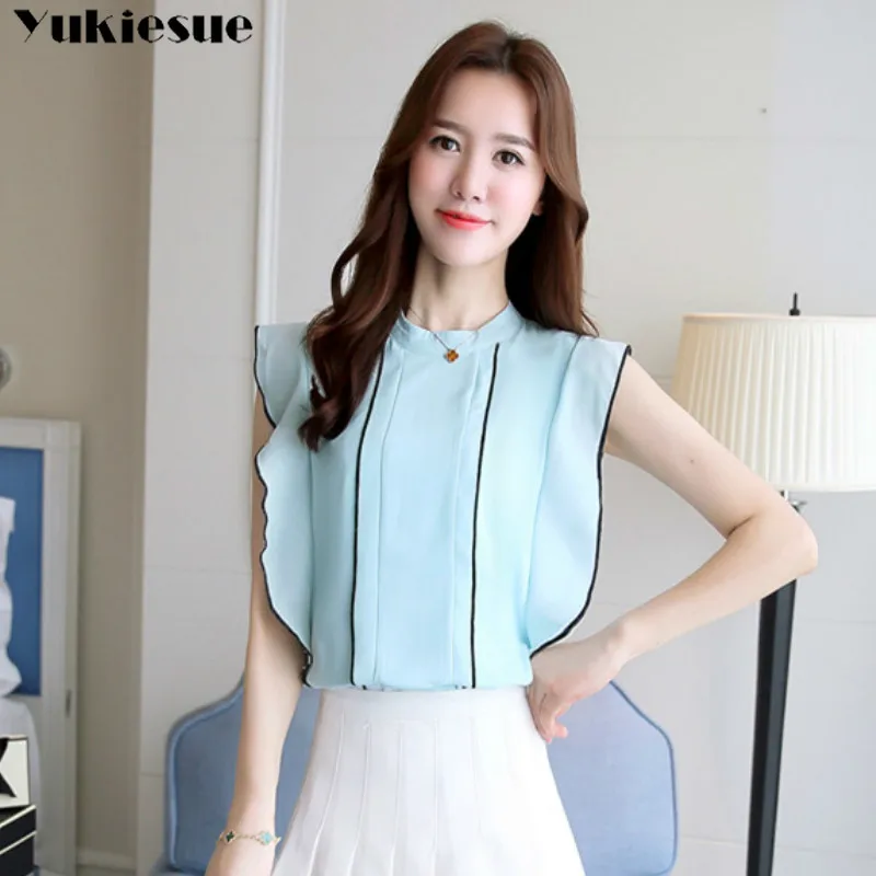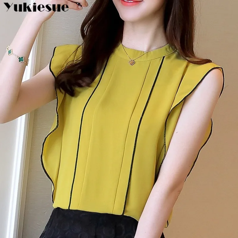 Женская шифоновая блузка без рукавов, белая однотонная элегантная рубашка с оборками, повседневная одежда для лета, 2020