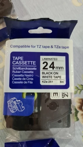 24 мм Tze-FX251 Гибкая этикетка черная на белом ламинированная этик...