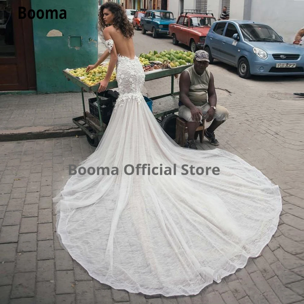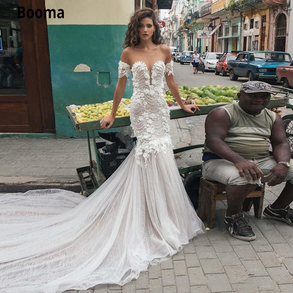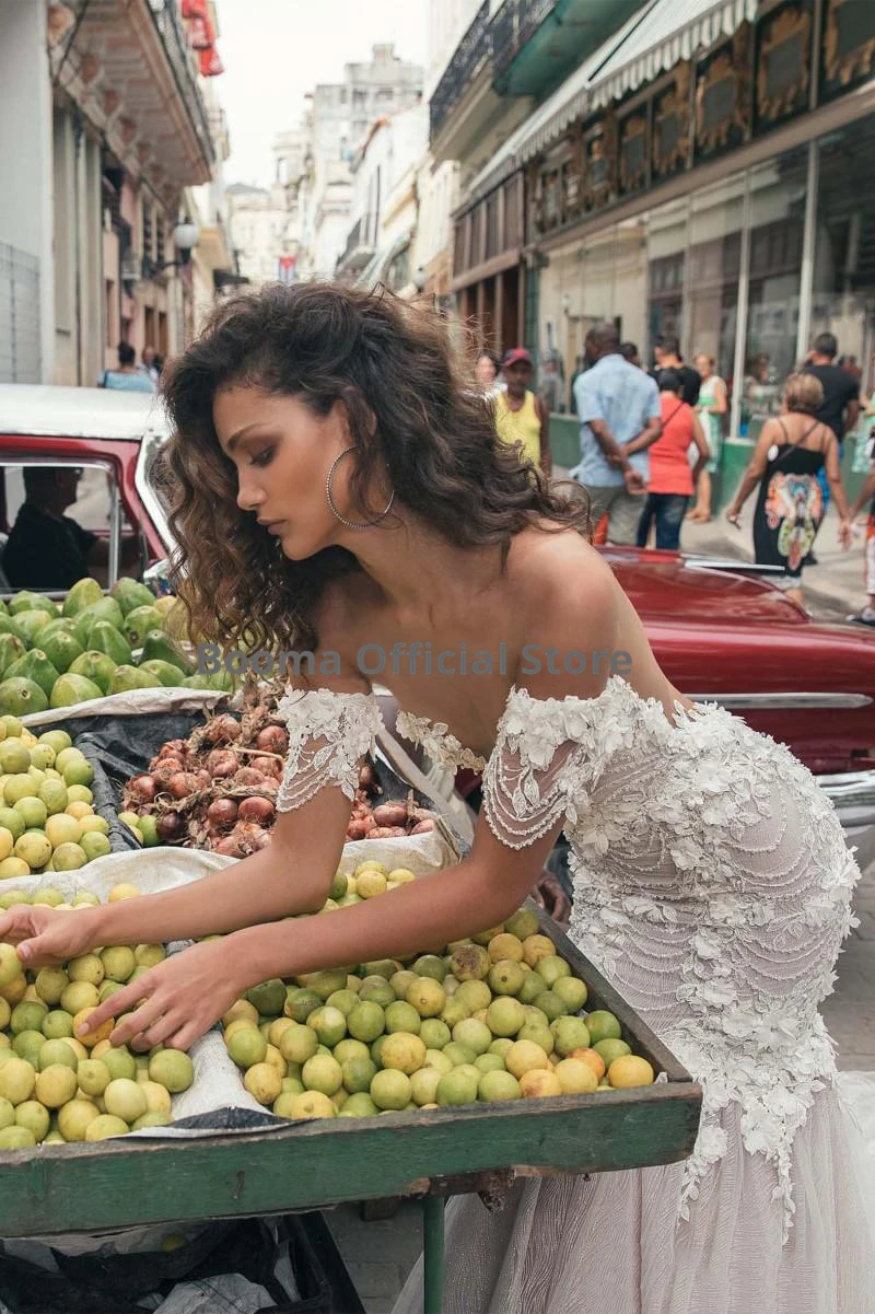 Женское свадебное платье с открытыми плечами Booma, кружевное ТРАПЕ...