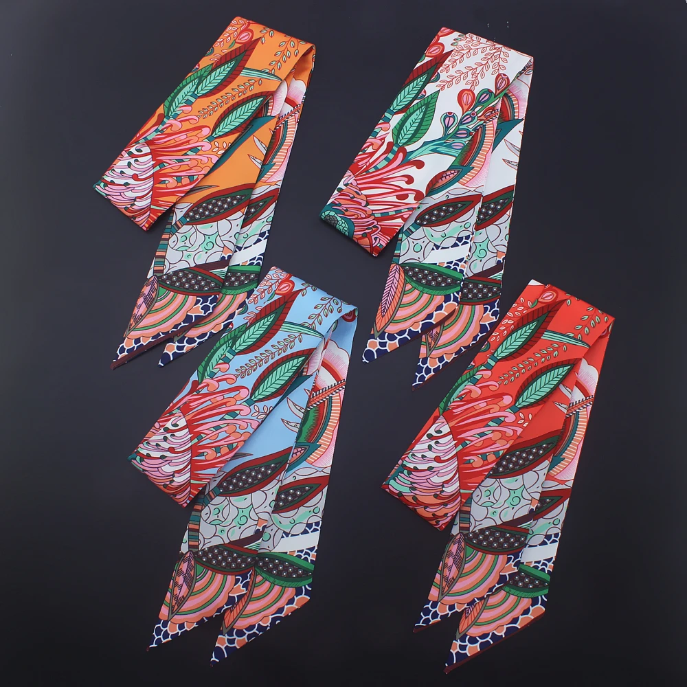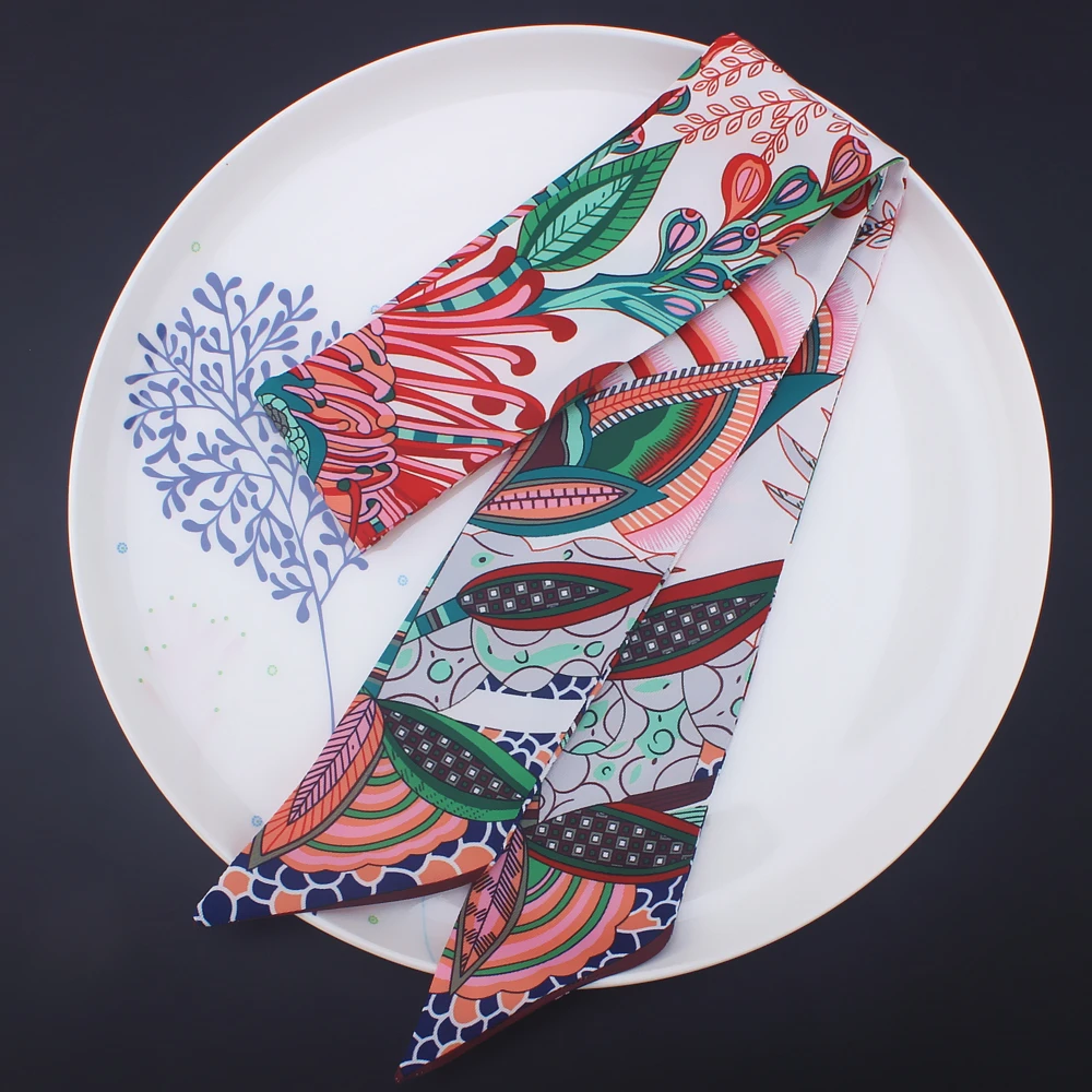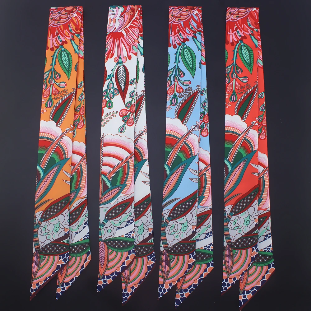 Бесплатная доставка, большой брендовый шарф 95 см * 5 см в упаковке с принтом, маленький шарф, Женский саржевый шелковый шарф, повязка на голову, длинные шарфы, аксессуары для сумок, лента