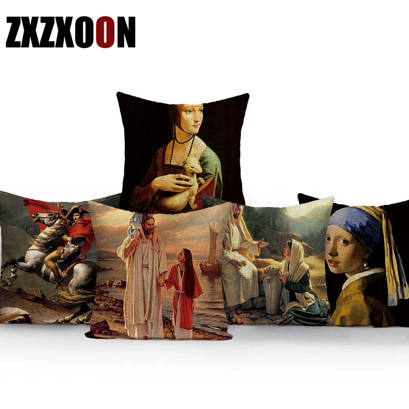 Декоративный чехол для диванных подушек, художественная картина маслом, жемчужина, девушки, серьги, чехол для диванной подушки, украшение для гостиной