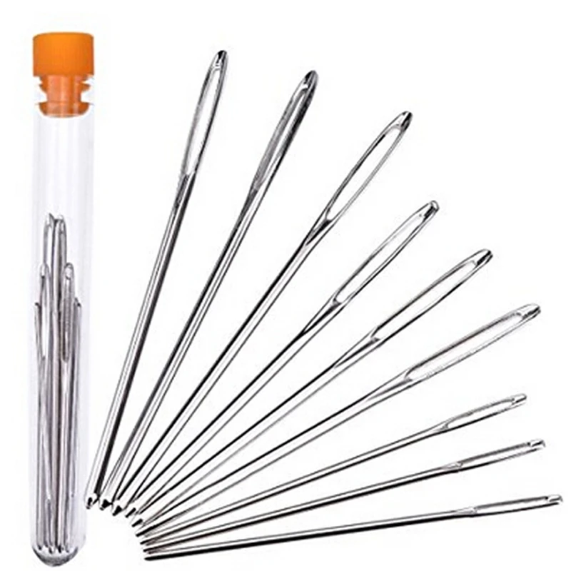 9 шт. Серебряная игла для шитья из нержавеющей стали, игла для вышивания с прозрачной иглой для самостоятельного шитья