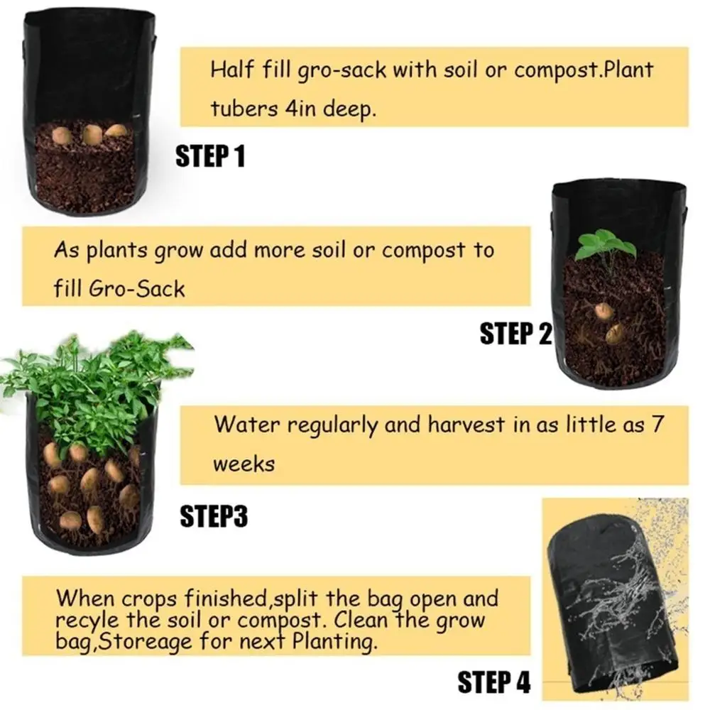Здоровый рост: мешок для выращивания имеет три отверстия для облегчения вентиляции растений. Позволяет корням дышать и расти здоровее, повышает рост и урожайность овощей, предотвращает Кружение корней, снижает риск ударов при трансплантации, а также Удаляет излишки воды.