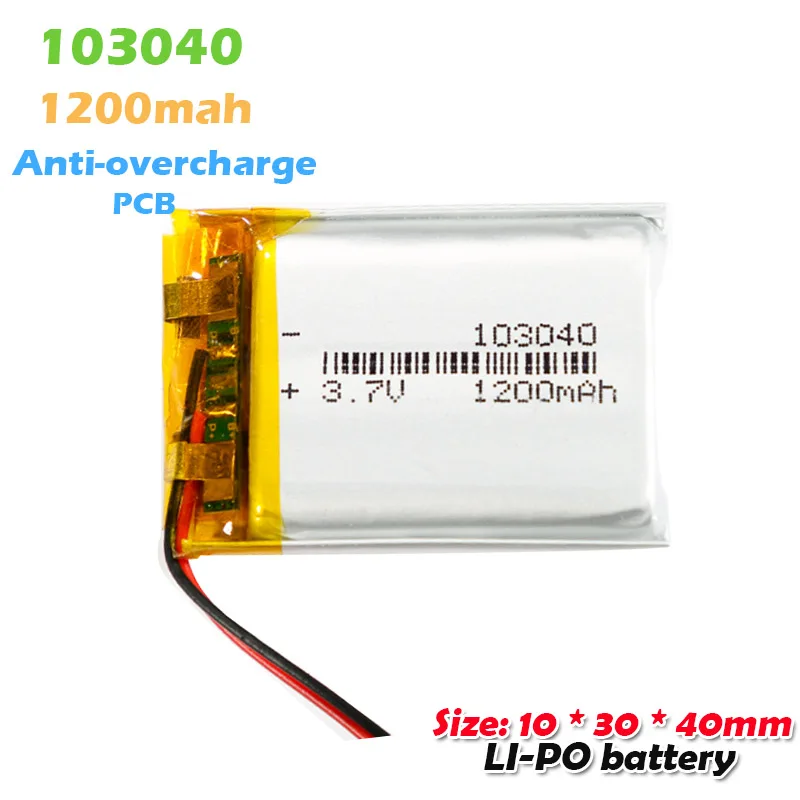 Литий-полимерный аккумулятор 103040, 3,7 в, 1200 мА ч, для MP3, MP4, GPS, PSP PAD, LED, DVD светильник, селфи-палка, внешний аккумулятор, перезаряжаемые элементы