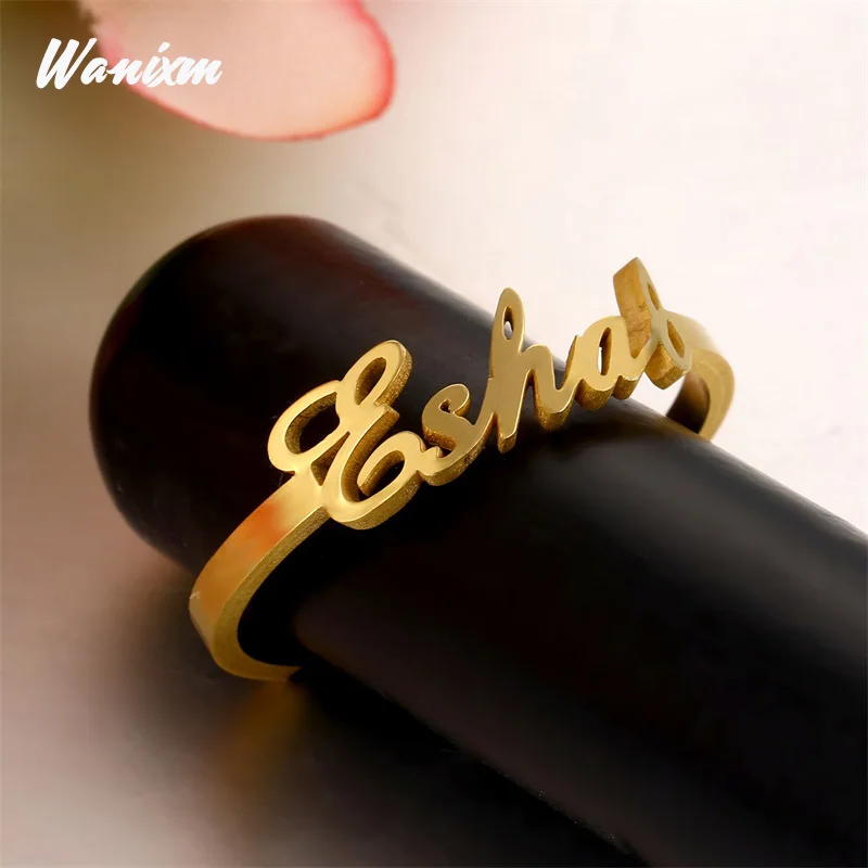 Индивидуальное кольцо с именем, персонализированное кольцо с именем, свадебные кольца из нержавеющей стали регулируемого размера для женщин, табличка с именем
