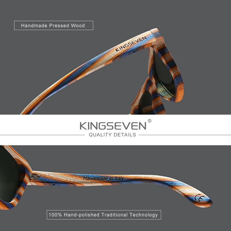 Солнцезащитные очки KINGSEVEN ручной работы, оригинальный дизайн, цветные деревянные очки в полной оправе, женские роскошные Брендовые мужские очки