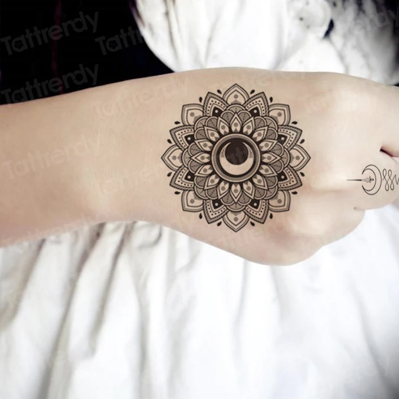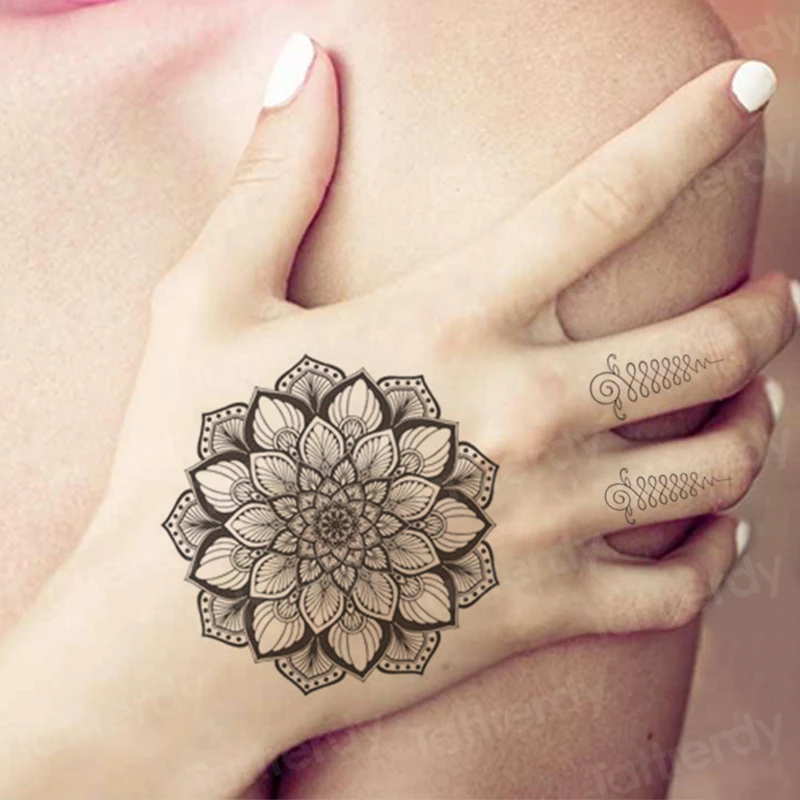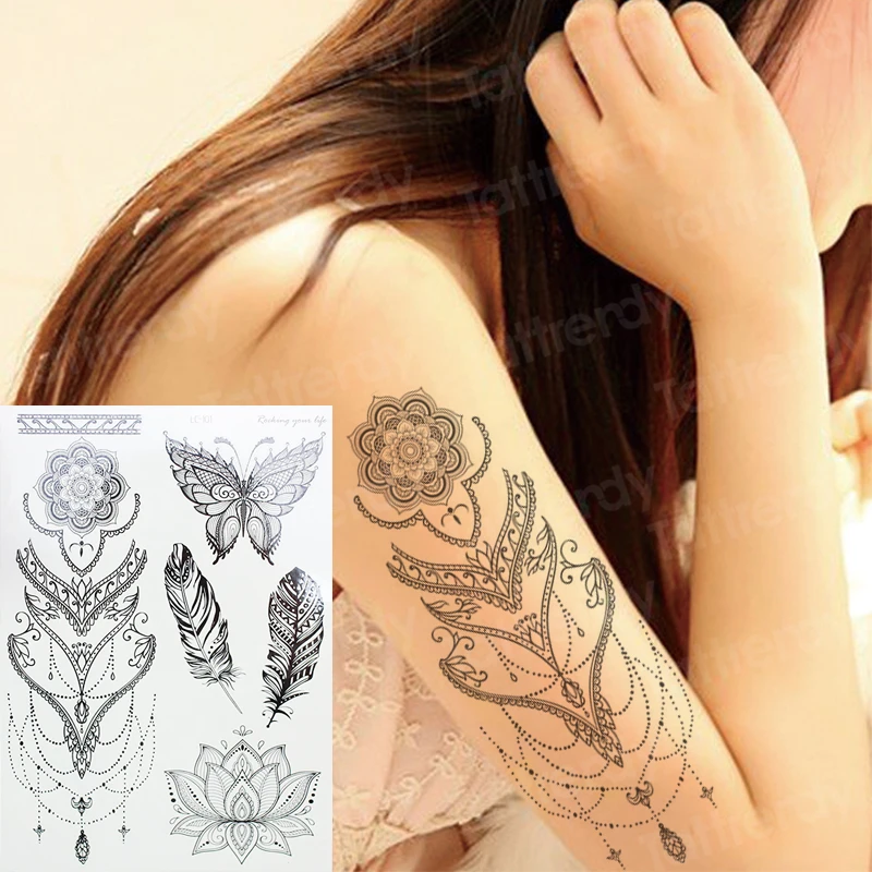 Временные тату-наклейки мандала, ювелирные изделия, черные татуиров...