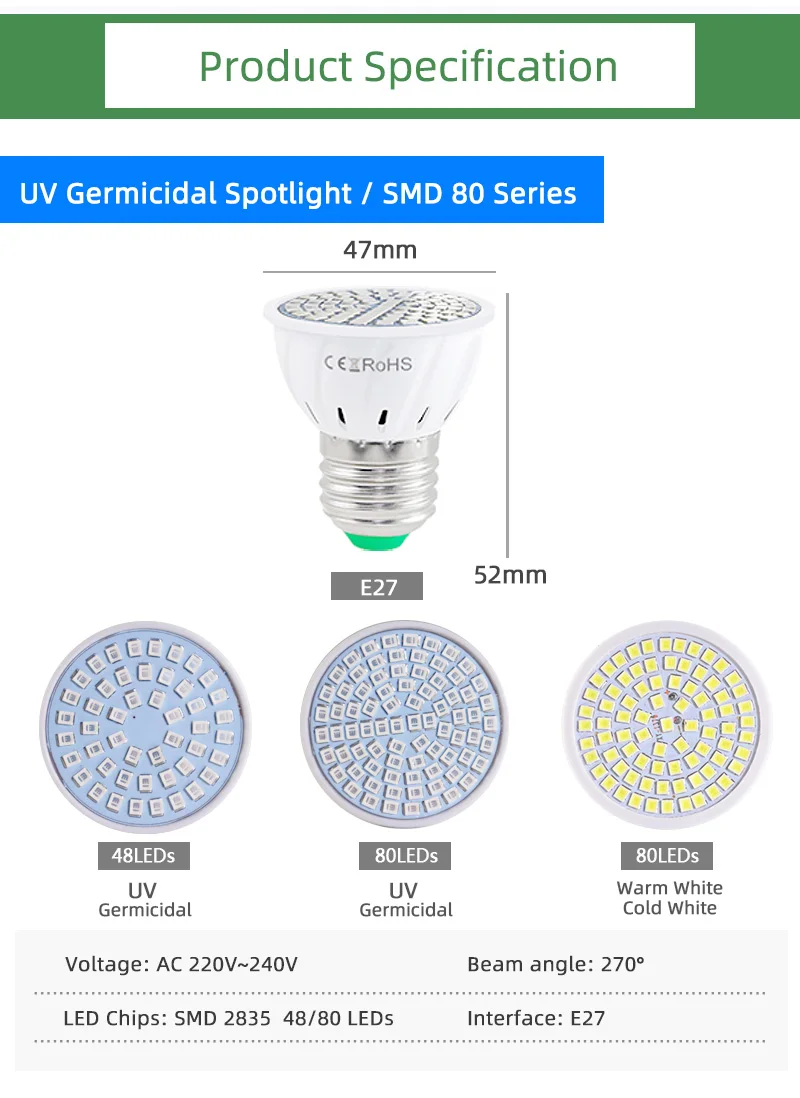 Kaguyahime УФ дезинфекционный стерилизатор лампа E27 MR16 лампа UVC Kill Mite ультрафиолетовые озоновые бактерицидные огни для дезинфекции