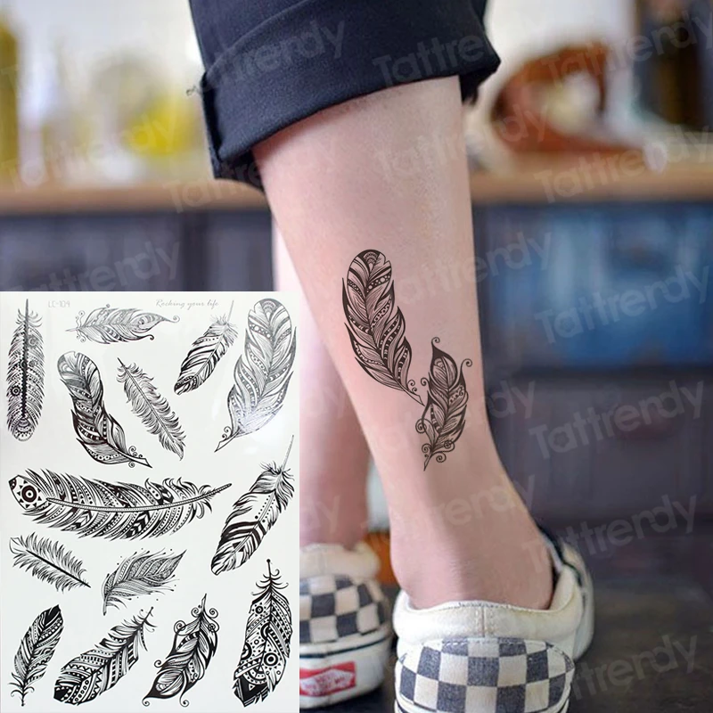 Временная татуировка хной, черное кружевное перо, мандала, тату, искусственная Водонепроницаемая мандала, тату, стикер на лодыжку, рукав, узор