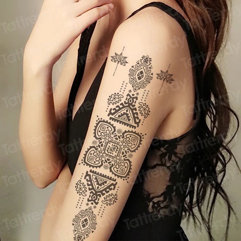 Временные тату-наклейки мандала, ювелирные изделия, черные татуиров...