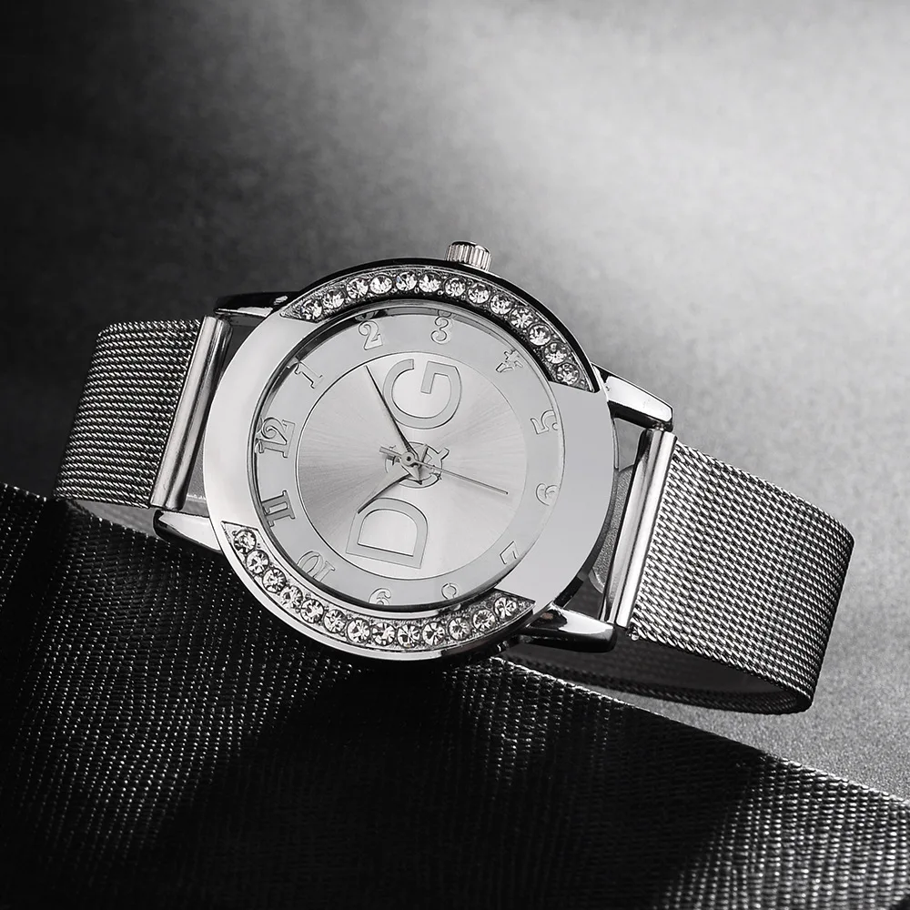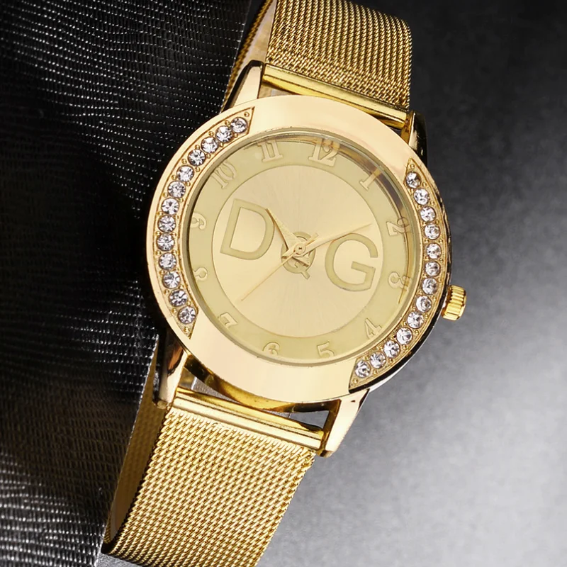Золотые Роскошные модные женские часы DQG бренд из нержавеющей стал...