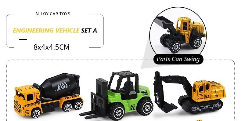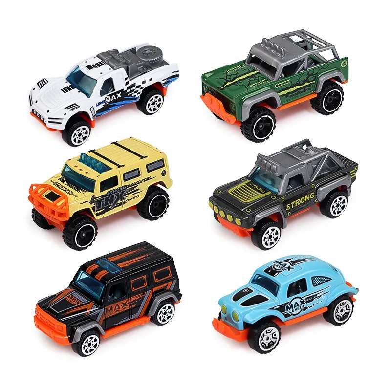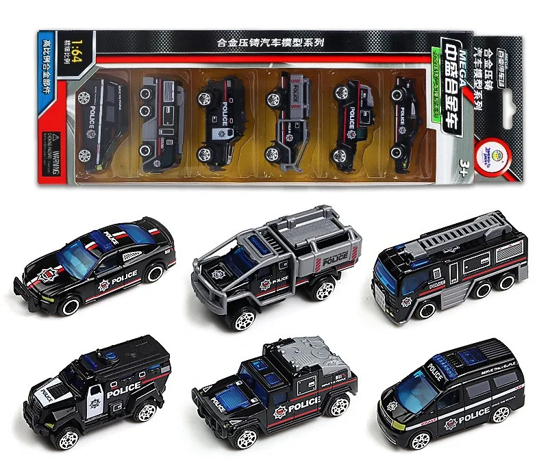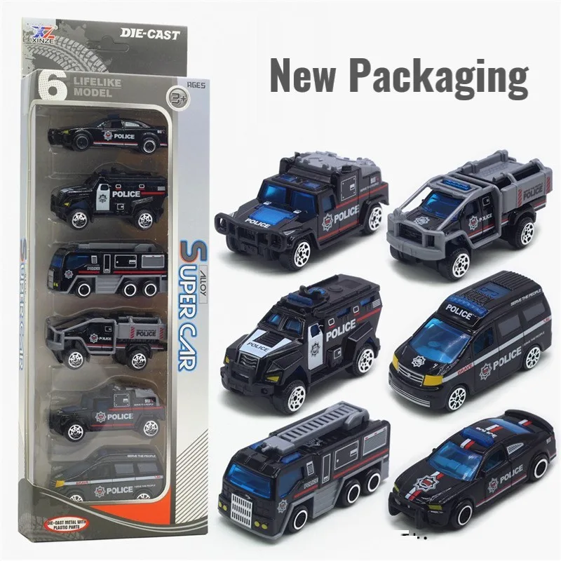 Набор из 6 предметов, модель автомобиля из сплава 1:64, инерционная, скользящая, инженерная, пожарная машина, пикап, внедорожник, полиция, гоночный автомобиль, детские игрушки