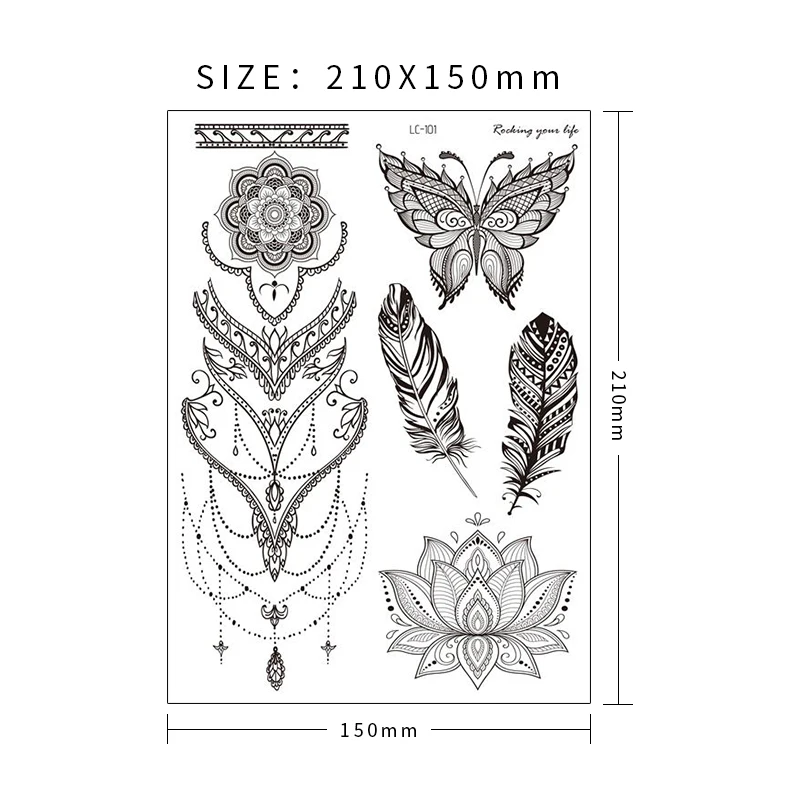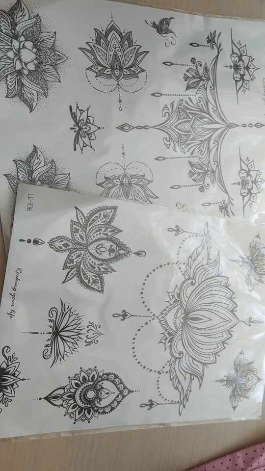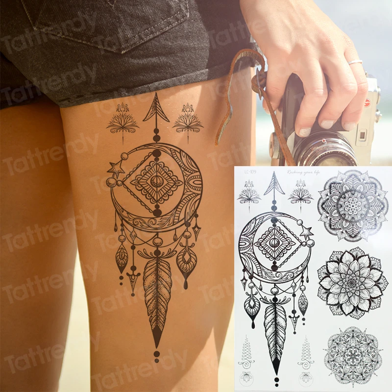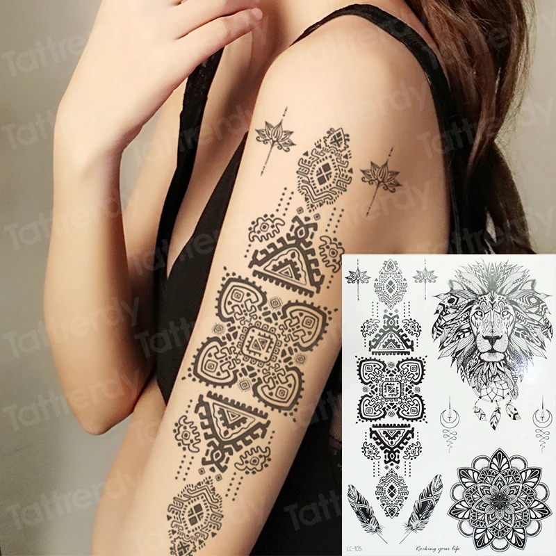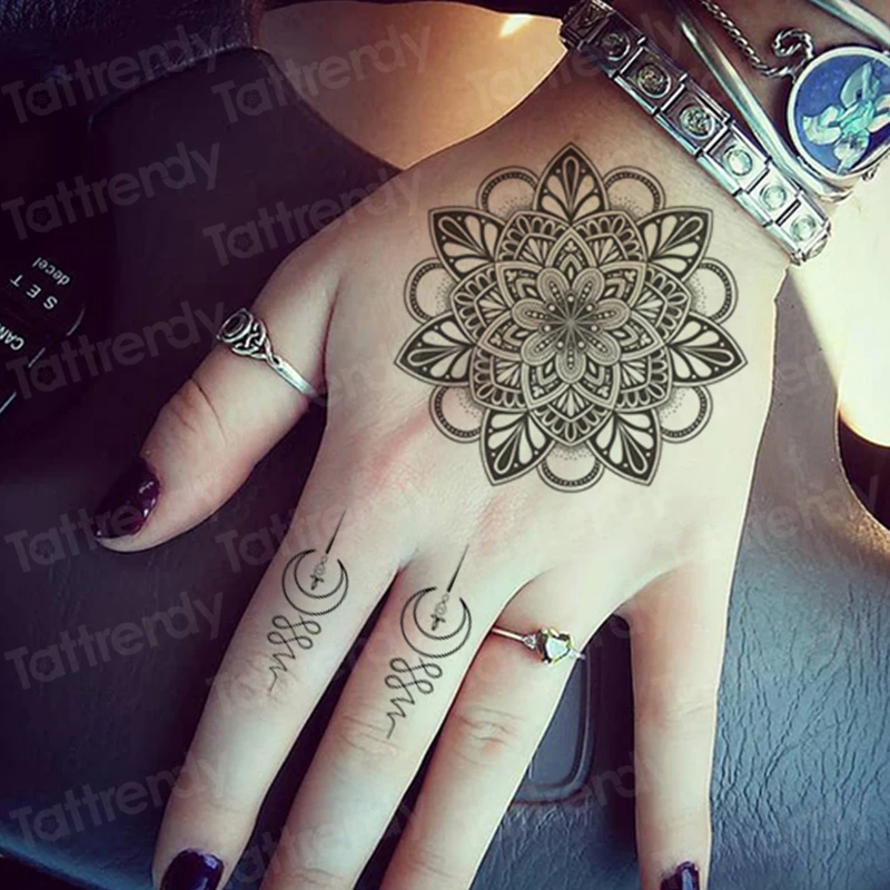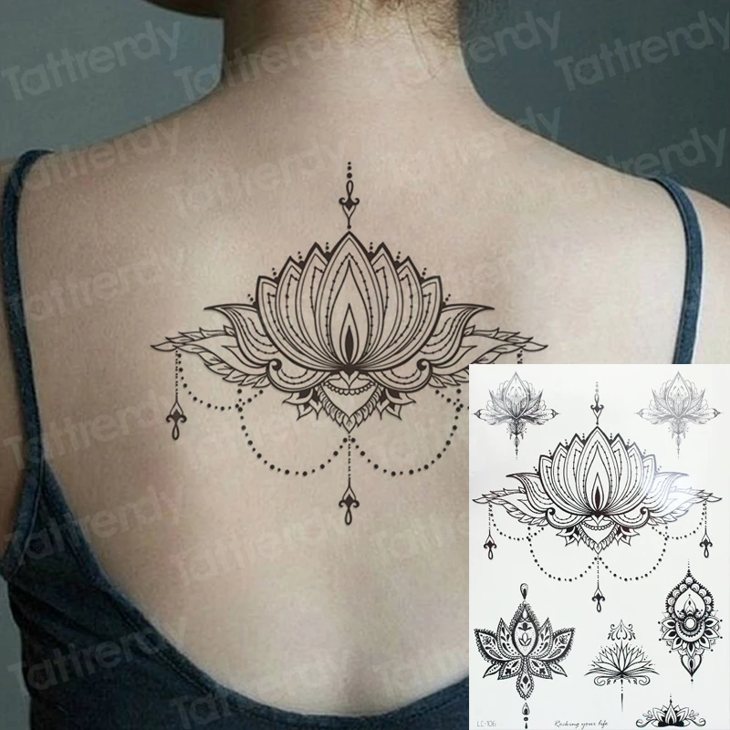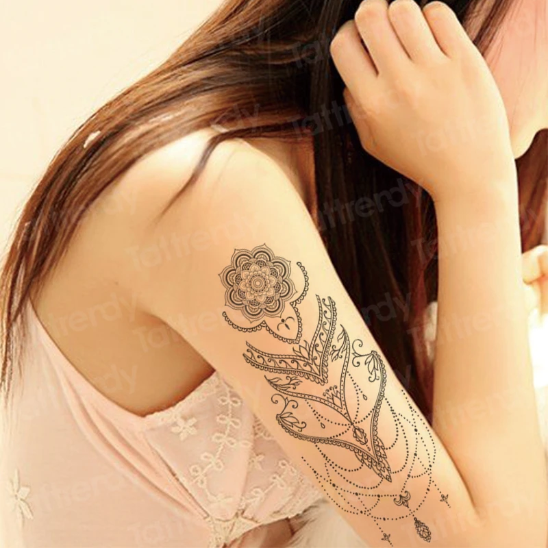 Наклейка-тату для женщин, индийская хна, узор, мандала, временная татуировка, наклейка, ювелирное изделие, цветок лотоса, тату для девушек, задняя рука