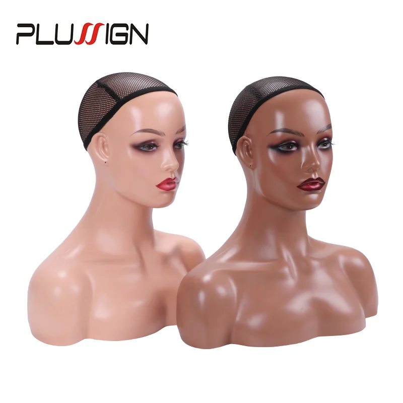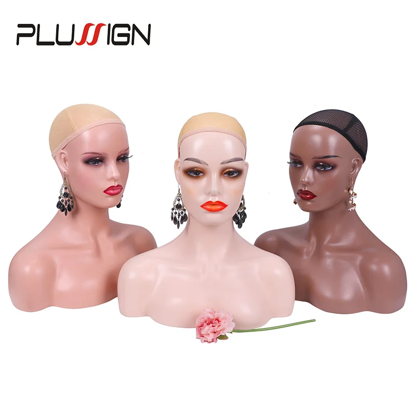 Голова манекена Plussign для парика, солнцезащитные очки, ювелирный дисплей, женский парик с подставкой на плечах, женская бежевая темно-коричневая витрина